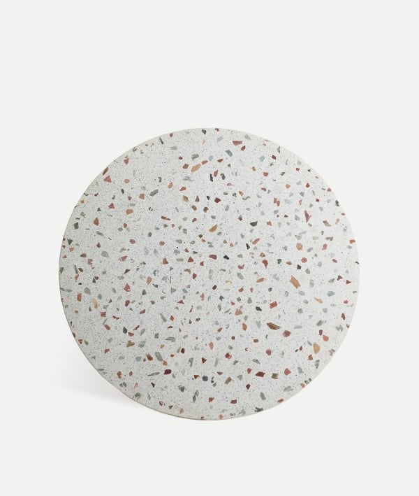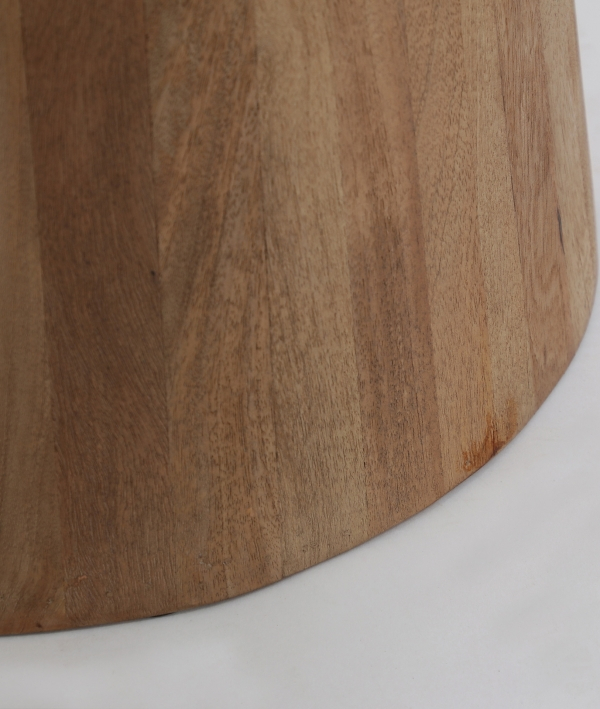 Această masă de dining impresionează prin blatul rotund din terrazzo alb, un material cu personalitate, plin de textură și pigmentări discrete ce adaugă profunzime vizuală. Baza conică din lemn de mango, cu fibră naturală și tonuri calde, completează perfect estetica organică și modernă a piesei.