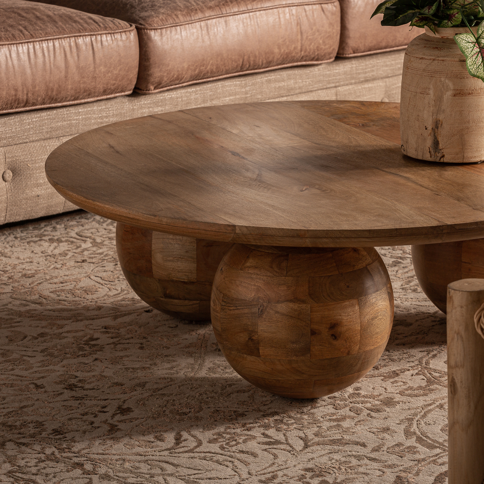 Masuta de cafea contemporana din lemn de mango, cu textura unica si aspect versatil. Masute de cafea moderne cu nuante calde, ideale pentru living elegant.