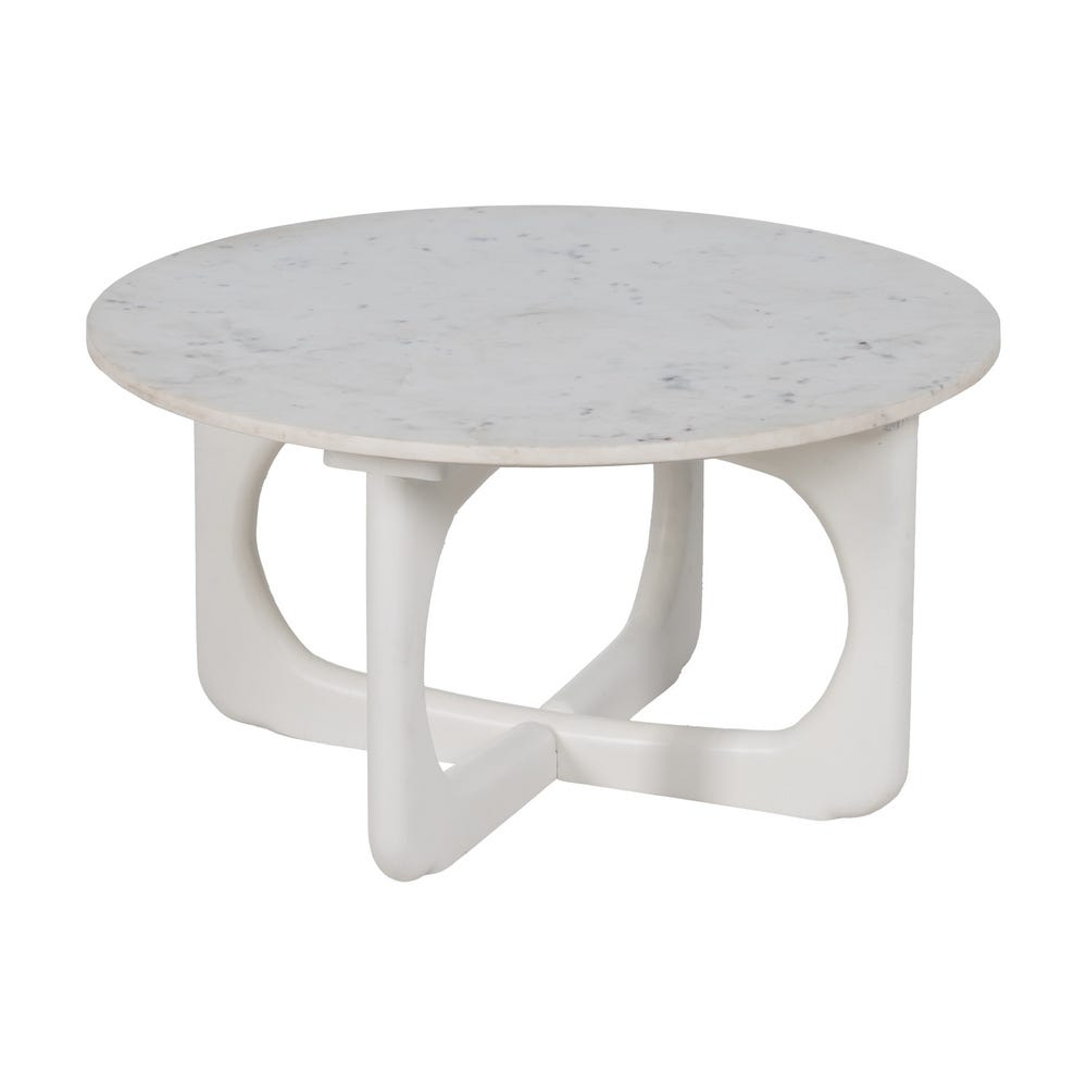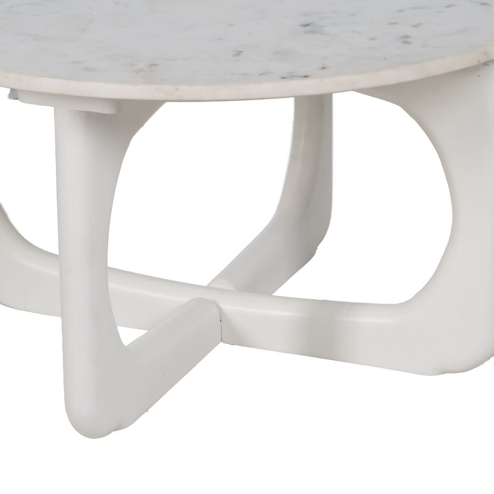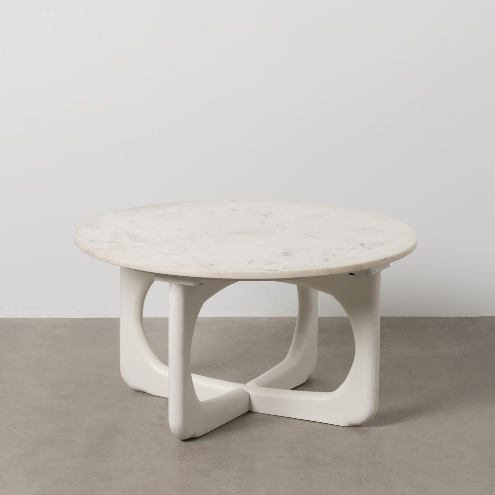 Masa de cafea se remarcă prin blatul rotund din marmură albă, un material natural cu variații unice de textură, care adaugă personalitate și lux fiecărui spațiu. Structura sculptată din lemn de mango completează perfect estetica modernă, oferind stabilitate și un contrast vizual plăcut între alb și tonurile calde ale lemnului.
