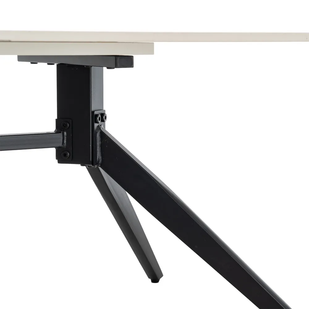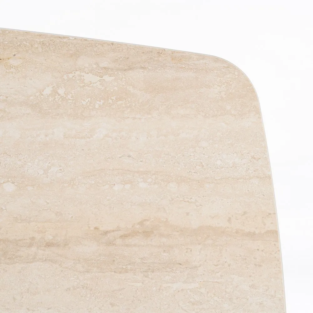 Material blat: piatră sinterizată aspect travertin | Bază: metal | Picioare: fier vopsit negru
