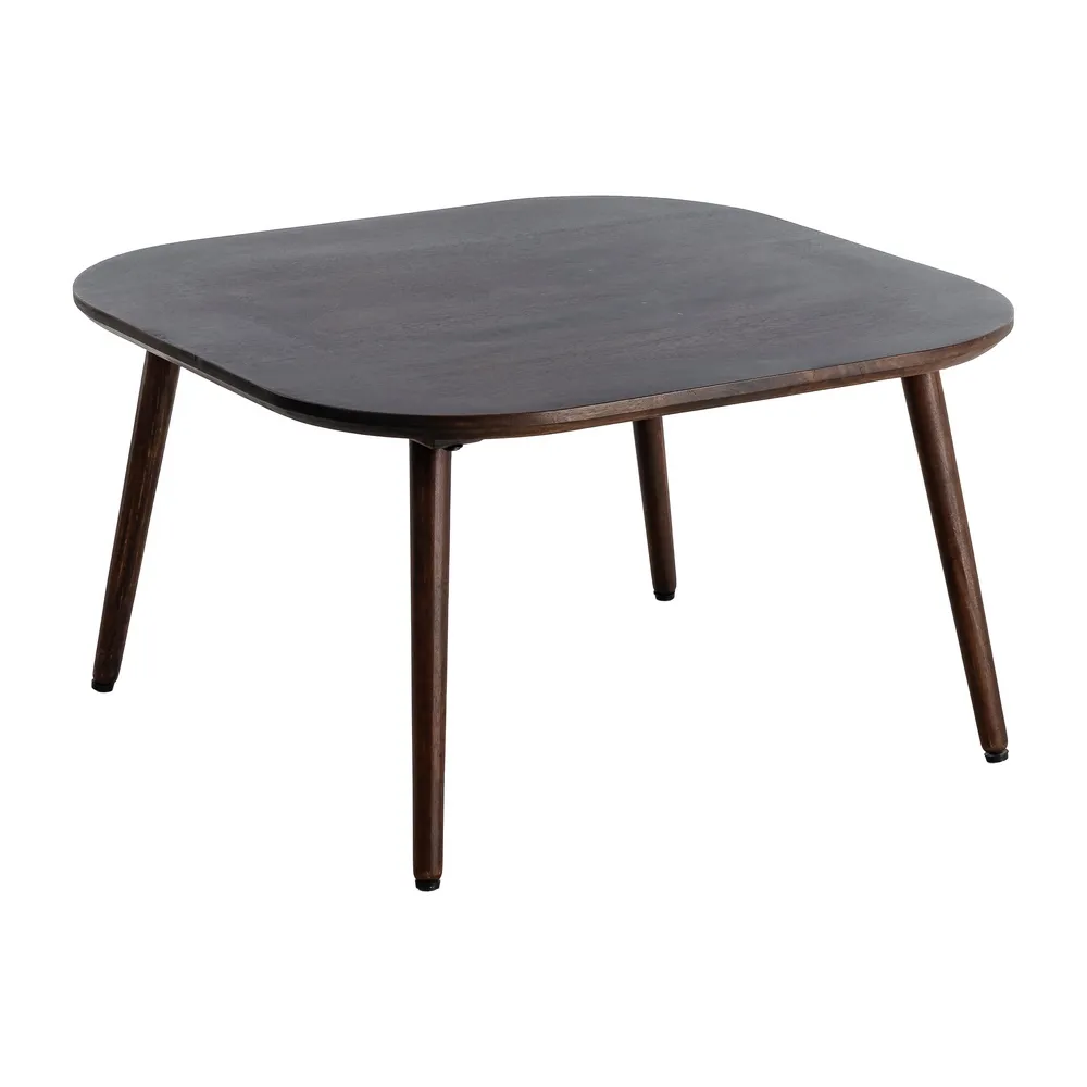 Elegantă și practică, această măsuță de cafea din lemn de mango maro închis îmbină robustețea materialului natural cu un design mid-century modern. Forma pătrată cu margini rotunjite și picioarele conice îi conferă un aer rafinat, perfect pentru a completa un living contemporan sau retro.
