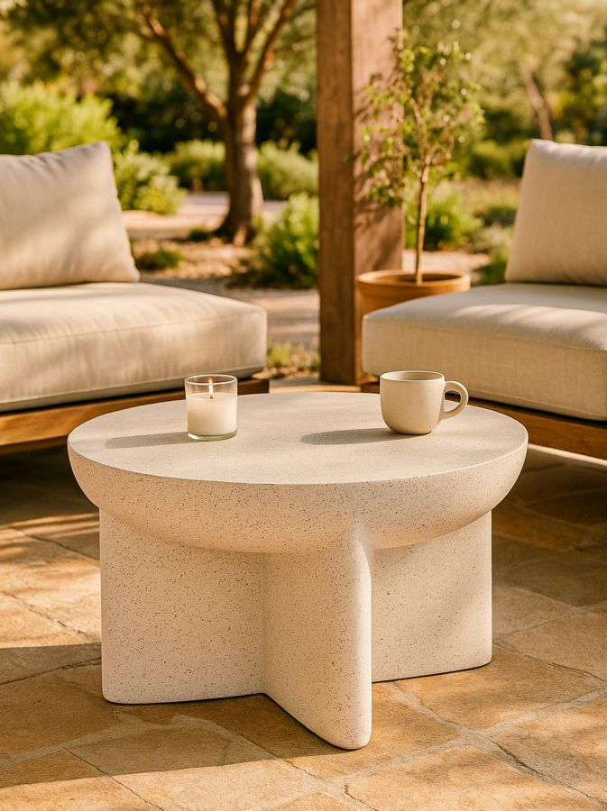 Un volum plin și impunător care amintește de formele arhaice ale pietrei sculptate. Această măsuță de cafea din MgO în nuanță crem este o piesă statement pentru living, ideală pentru amenajări moderne, contemporane sau minimaliste cu influențe organice. Designul său sculptural și proporțiile echilibrate creează un punct focal elegant, exprimând rafinament și un statut estetic asumat în zona de zi.