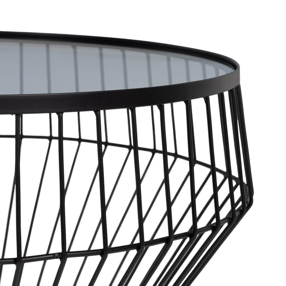 Acest set de două mese de cafea rotunde îmbină cu rafinament designul industrial modern și eleganța discretă a formelor geometrice. Structura conică inversată din metal negru mat creează un efect vizual dinamic, în timp ce blatul din sticlă securizată transparentă adaugă luminozitate, rafinament și ușurință în utilizare.
