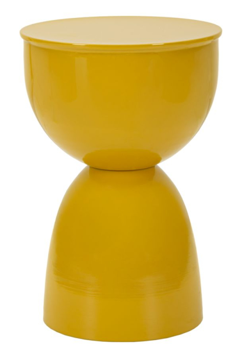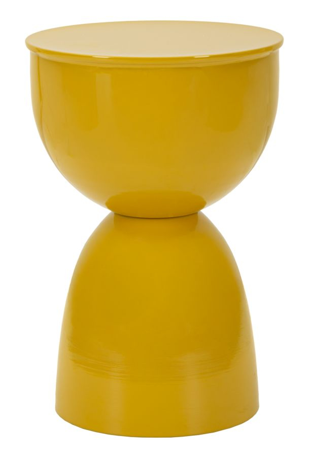 Masuta laterala rotunda din metal in culoare mustar cu design modern si finisaj lucios este un element decorativ energic pentru interioare creative. Forma compacta si suprafata lucioasa reflecta lumina si dinamizeaza spatiul. Realizata integral din metal, este usor de integrat ca piesa accent langa canapea sau fotoliu.