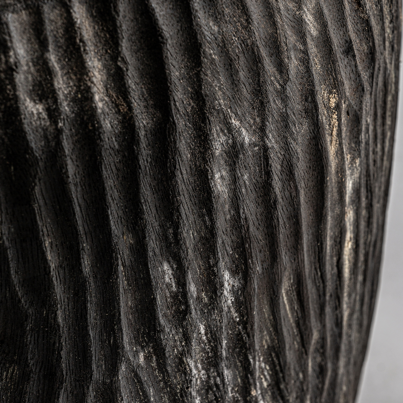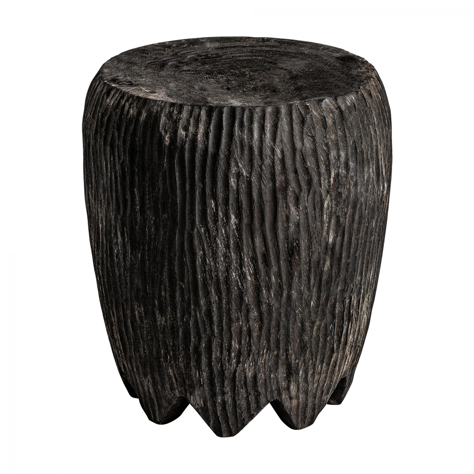 Masă auxiliară etnică din lemn suar negru, cu aspect robust și distinctiv. Piesă unică pentru interior contemporan cu accent dramatic.