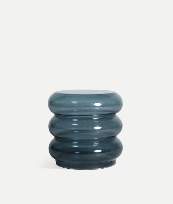 Măsuță laterală din sticlă albastră translucidă – o piesă modernă și elegantă, care îmbină perfect echilibrul vizual cu rafinamentul minimalist. KOTOR impresionează prin formele sale fluide și suprafața translucidă care captează lumina, oferind un efect subtil și sofisticat oricărui decor.