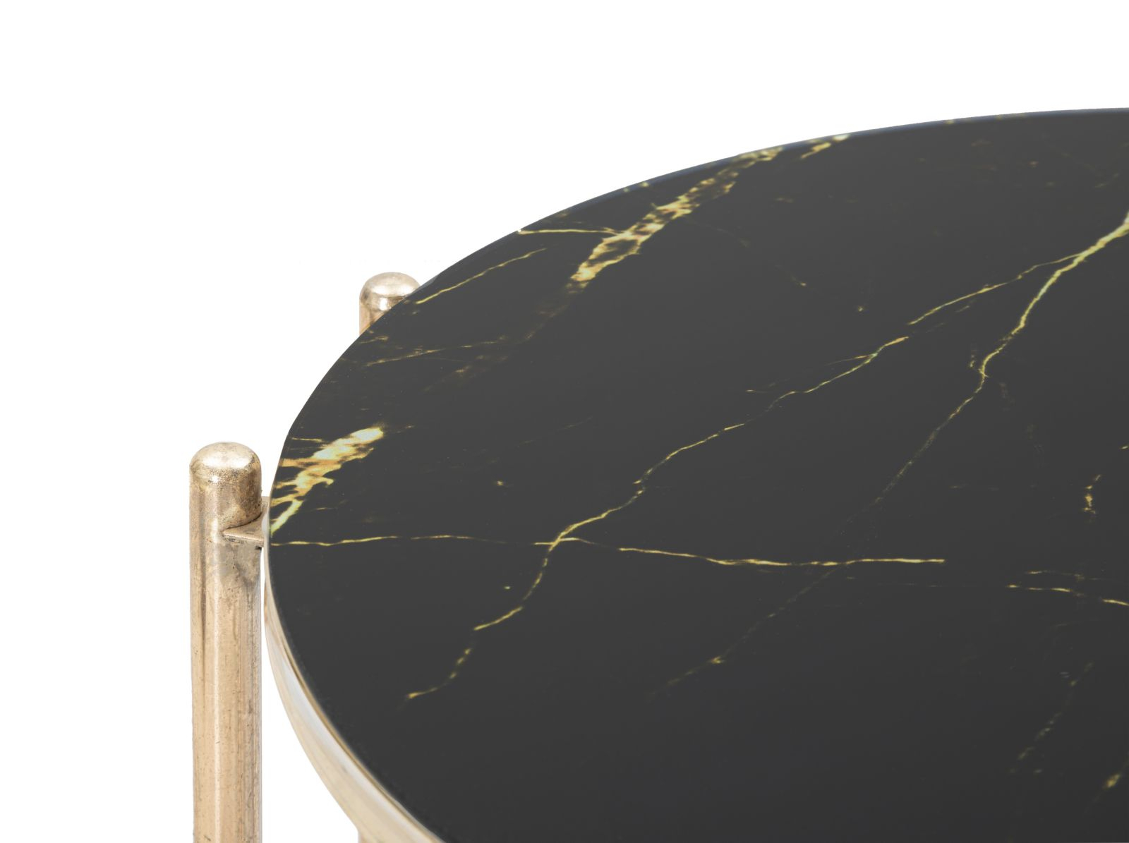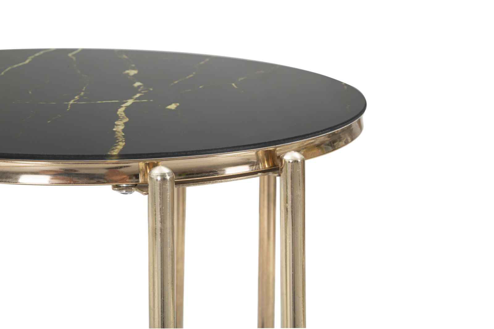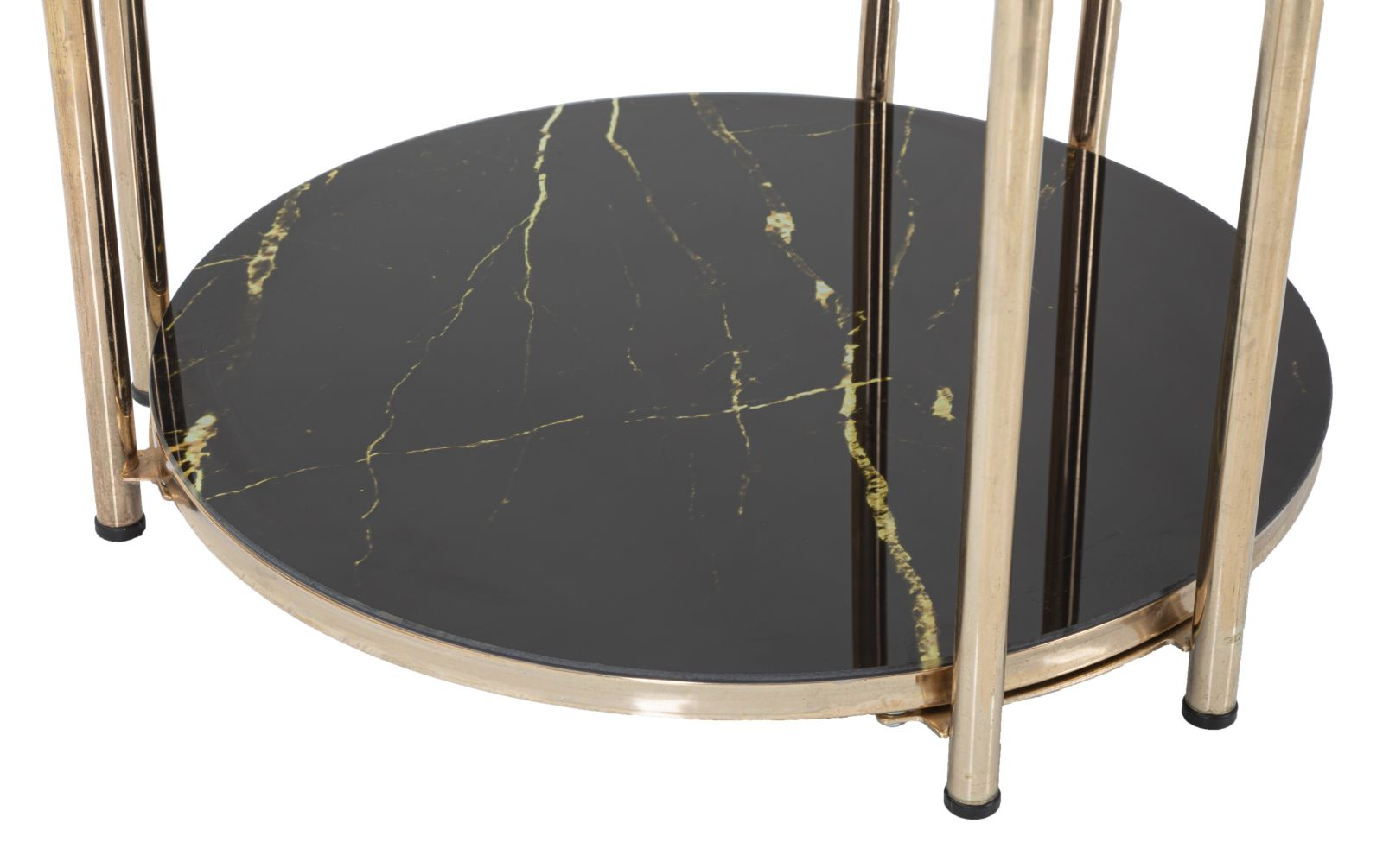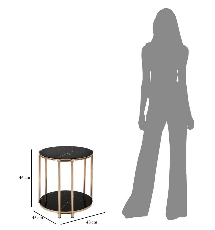 Masuta laterala eleganta, realizata din metal auriu cu 2 blaturi din sticla neagra. Designul rafinat al acestei masute te seduce din prima. Se poate folosi ca mobilier auxiliar in orice incapere.