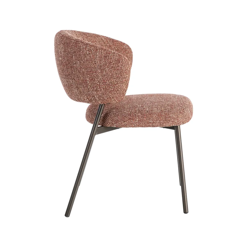 Adaugă un accent cromatic cald și sofisticat în zona ta de dining sau Horeca cu acest set de 2 scaune tapițate în stofă roșu marmorat. Designul modern, cu spătar monobloc curbat, oferă confort ergonomic și susținere optimă pentru utilizare zilnică, la masă sau la întâlniri.