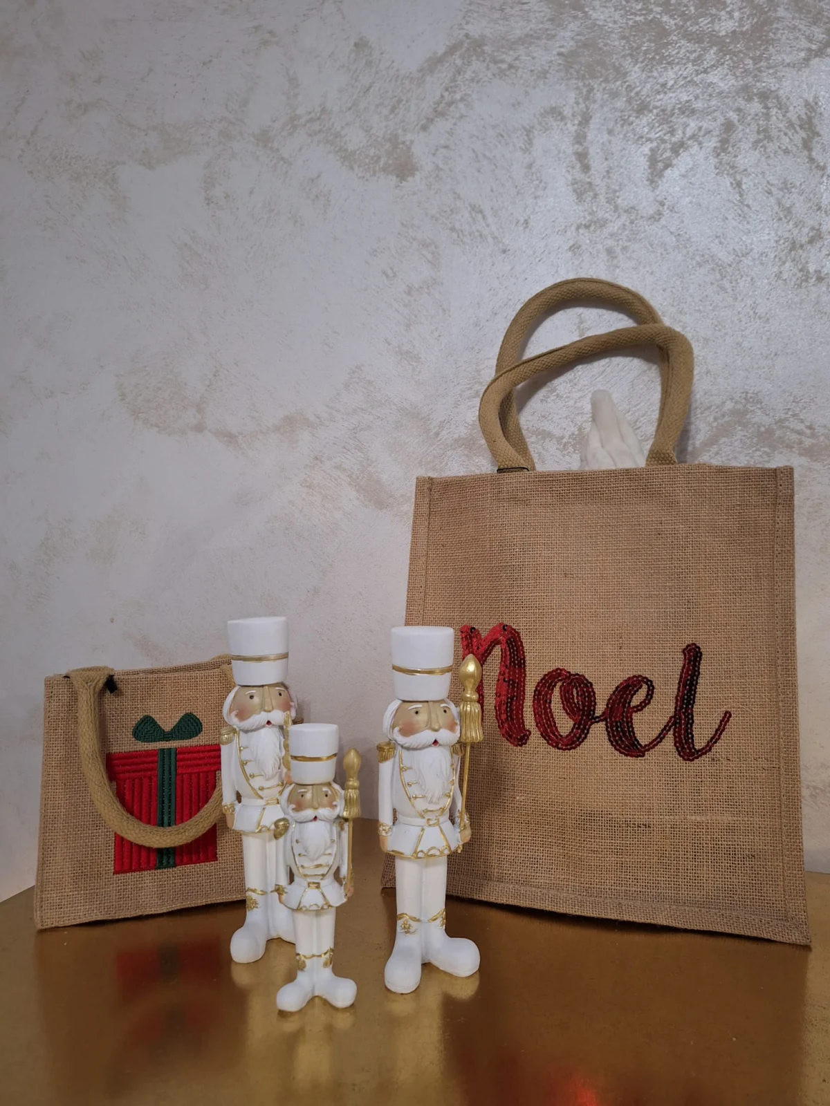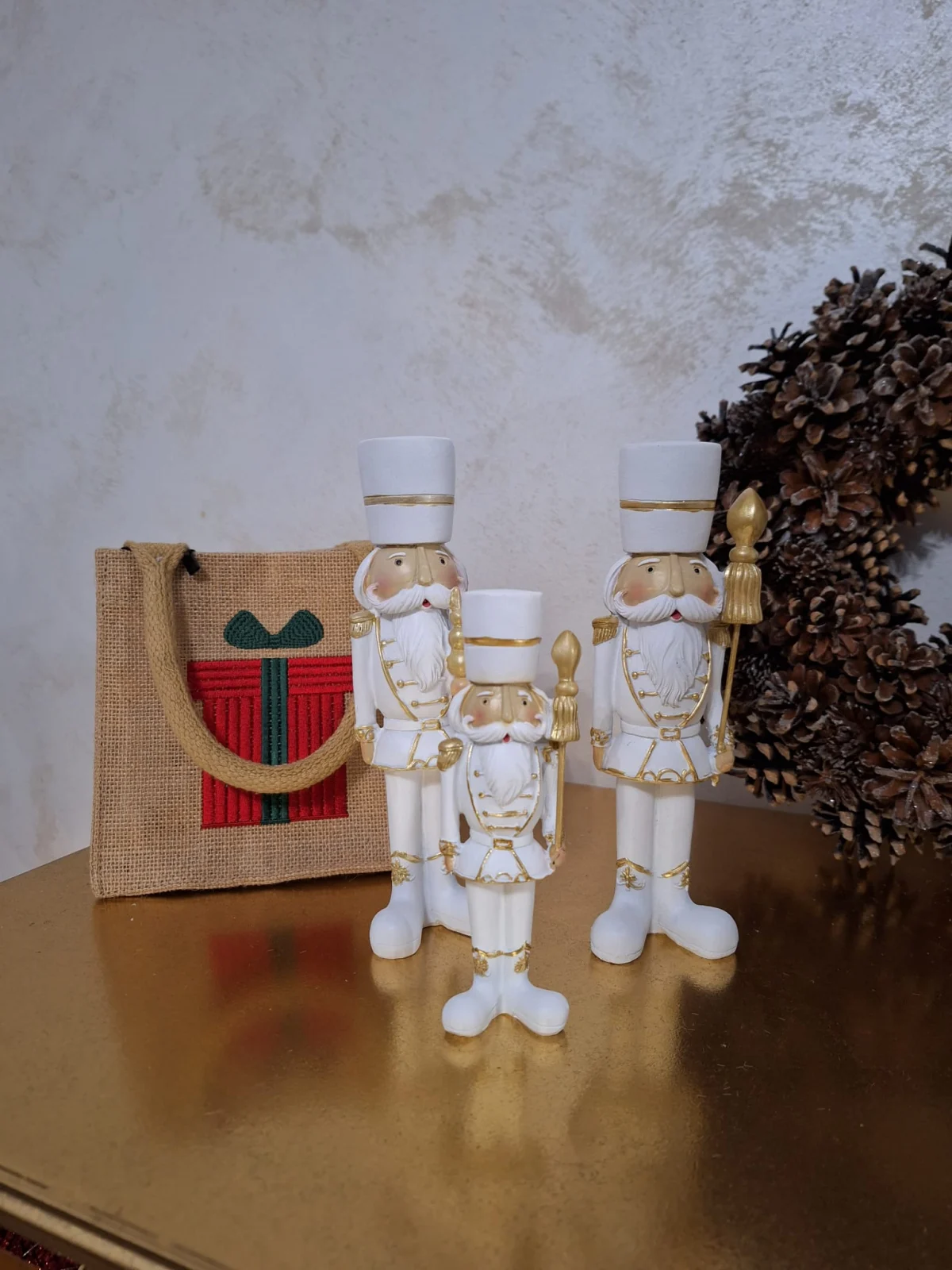 Adaugă un strop de eleganță festivă decorului tău cu acest Spargător de Nuci decorativ în nuanțe de alb și auriu. Realizat cu o atenție deosebită la detalii, acest obiect decorativ din rășină emană rafinament și tradiție, inspirat de faimoasa poveste a Spargătorului de Nuci. Culorile elegante de alb și auriu se potrivesc perfect într-un decor modern sau clasic, aducând un aer de sărbătoare și magie în orice încăpere. Acest accesoriu decorativ este ideal pentru a fi așezat pe rafturi, mese sau lângă bradul de Crăciun. Un cadou minunat pentru iubitorii de decorațiuni festive, acest spargător de nuci este o piesă deosebită care aduce bucurie și stil sărbătorilor tale.