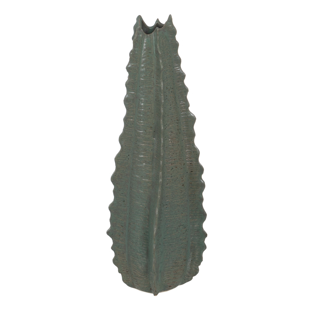 Această vază decorativă din ceramică, de culoare verde închis, cu dimensiunile 19 cm lățime, 18,5 cm lungime și 53,5 cm înălțime, se remarcă prin designul său sculptural și textura rafinată. Cu o deschidere de 5 cm, este perfectă pentru flori decorative sau poate fi folosită ca element singular într-o amenajare de lux. Datorită formei sale elegante și a culorii subtile, această piesă se integrează armonios în interioare moderne sau clasice, aducând o notă artistică și originală. Ideală pentru livinguri, holuri sau birouri, această vază transformă orice spațiu într-un decor rafinat.