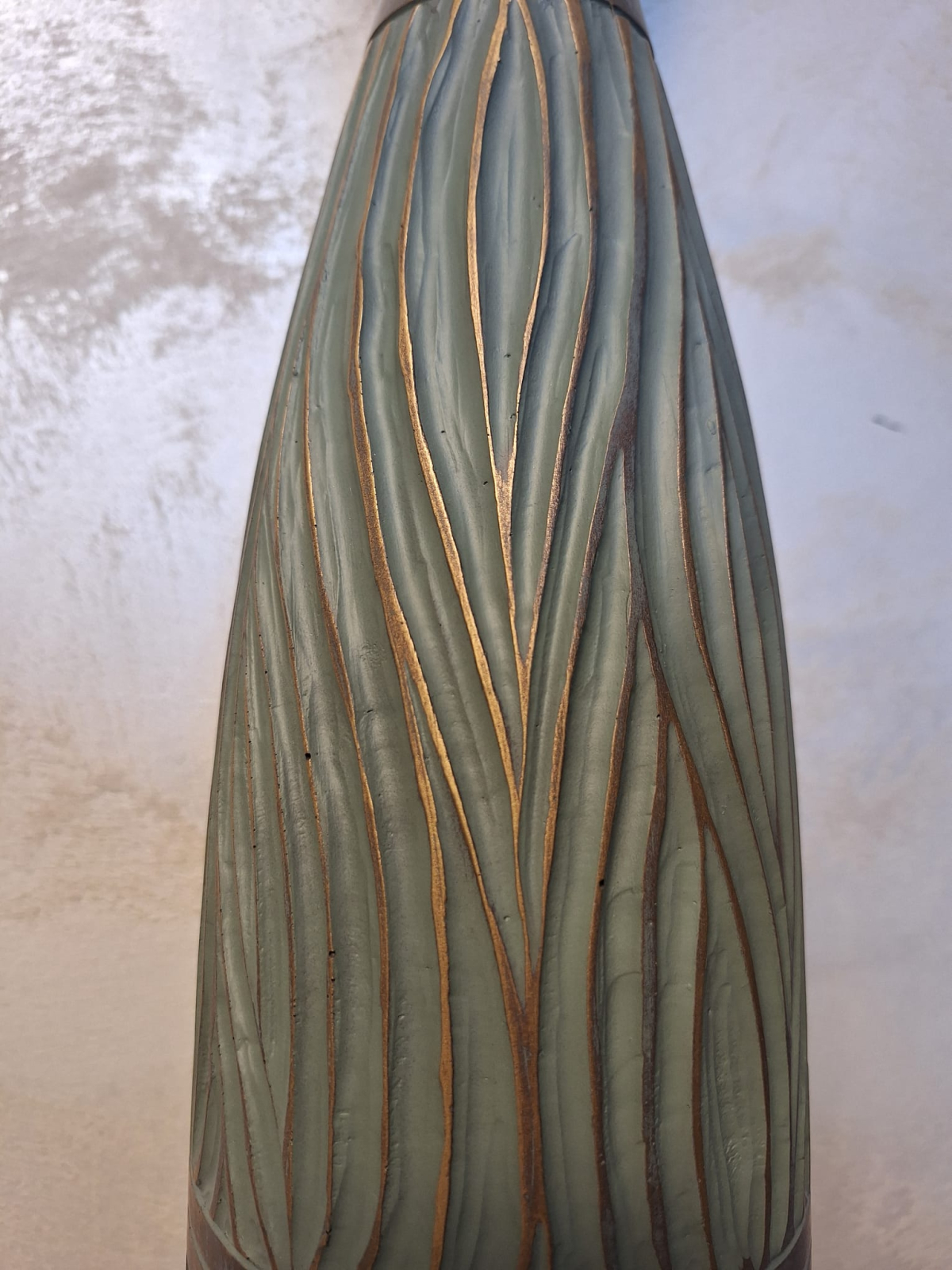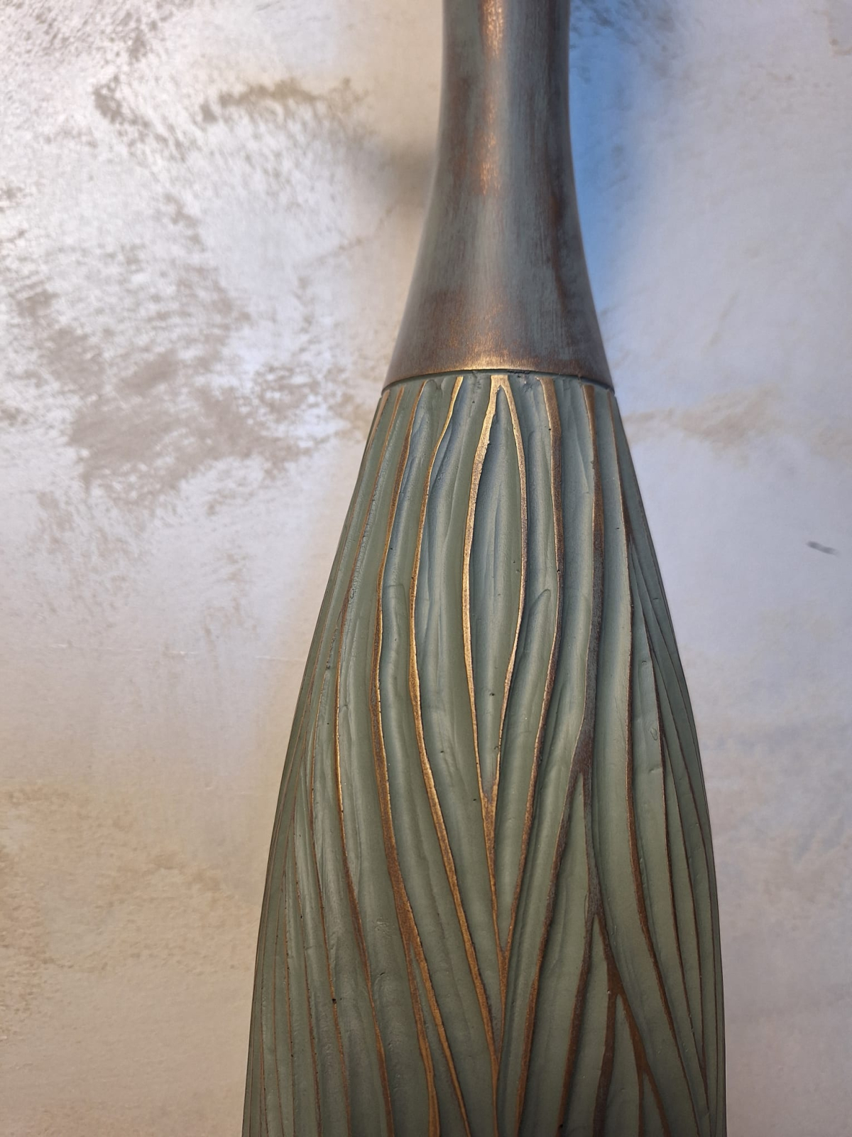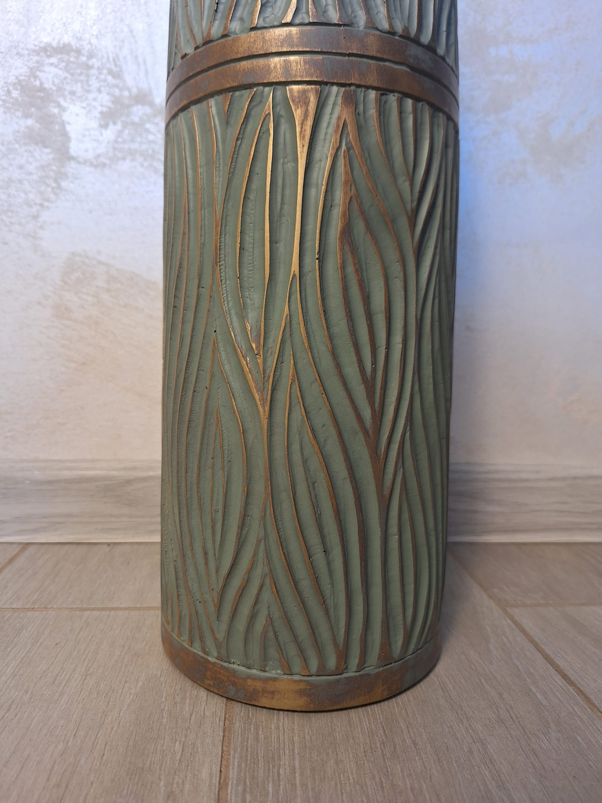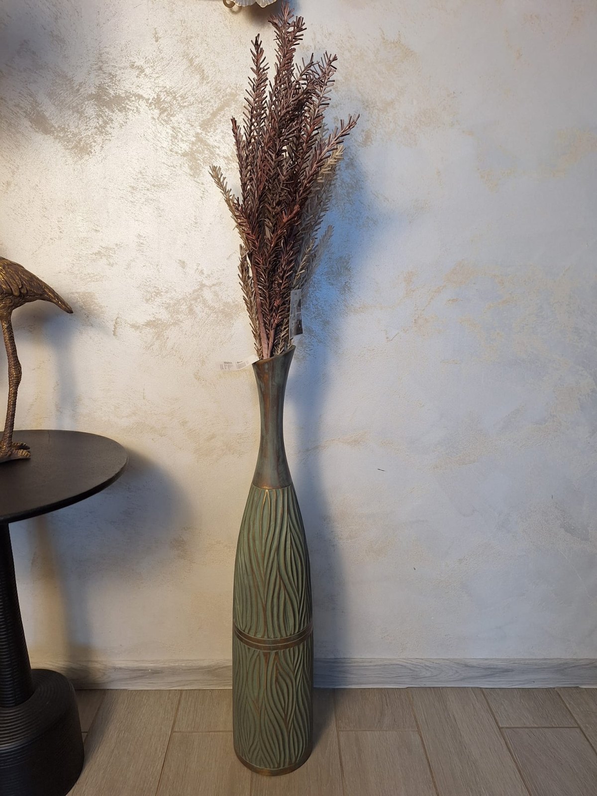 Adăugați o notă de eleganță și rafinament spațiului dvs. cu vaza noastră înaltă pentru podea, realizată manual din rasină într-o nuanță vibrantă verde auriu. Cu un design modern și glamuros, această vază este o piesă distinctivă care va atrage cu siguranță atenția. Adăugați un strop de lux în decorul dvs. și completați aspectul camerei dvs. cu această vază deosebită, care este atât o piesă de artă, cât și un obiect funcțional. Perfecțiunea și frumusețea ei vor completa cu siguranță orice spațiu. Cumparati acum și aduceți un plus de strălucire și stil amenajarii dvs.