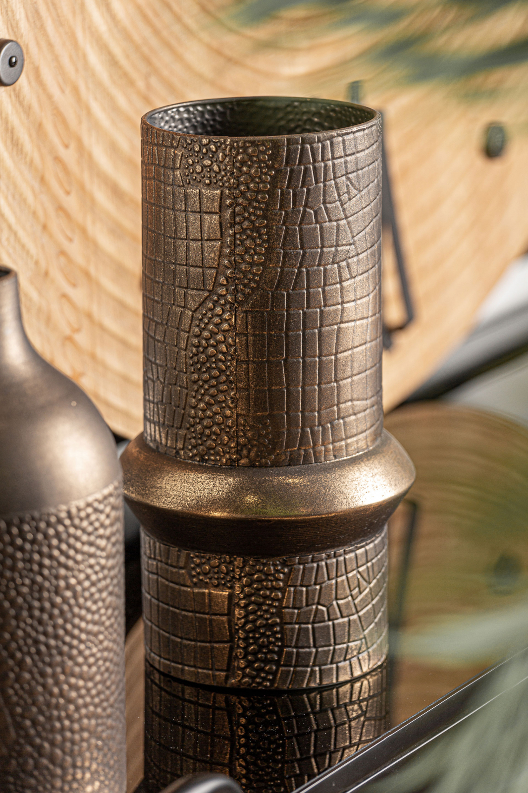 Vaza Vesc rotunda este o piesa Art Deco impunatoare ce se remarca prin inaltimea sa. Realizata din fier cu finisaj auriu aceasta vaza este perfecta pentru aranjamente florale inalte sau ca element decorativ statement. Dimensiunile sale de 18x18x34 cm ofera o prezenta vizuala puternica in orice interior. Greutate: 0.5 kg. Produsul este dezvoltat de designerii spanioli de la KODU Homedesign folosind materiale premium.