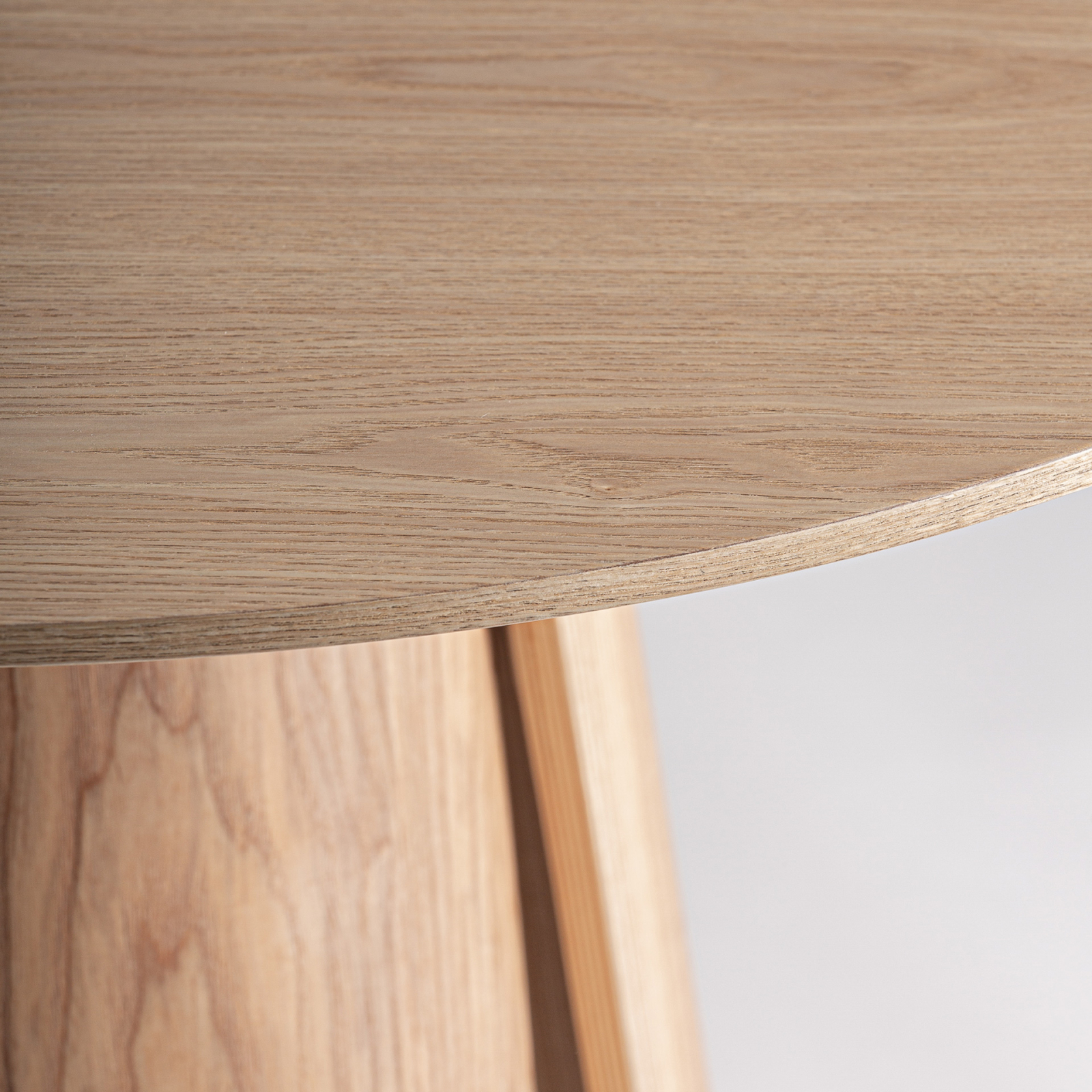 Realizată din MDF în nuanță de lemn deschis, masa Wieler se remarcă prin baza sa sculpturală, formată din elemente verticale care creează ritm și echilibru. Finisajul cald și textura naturală aduc o notă de autenticitate, iar forma sa oferă un punct de sprijin vizual fără a încărca spațiul.