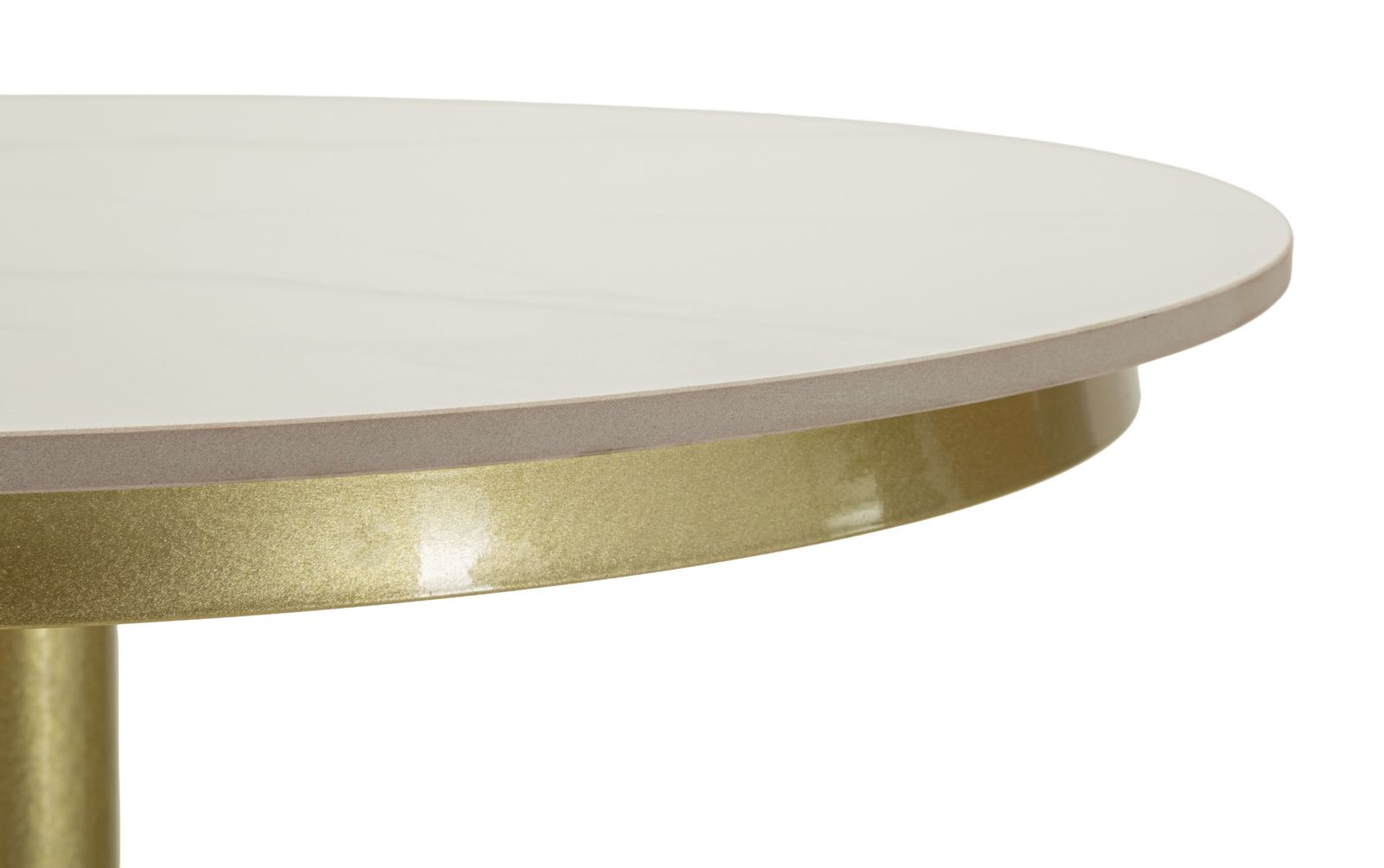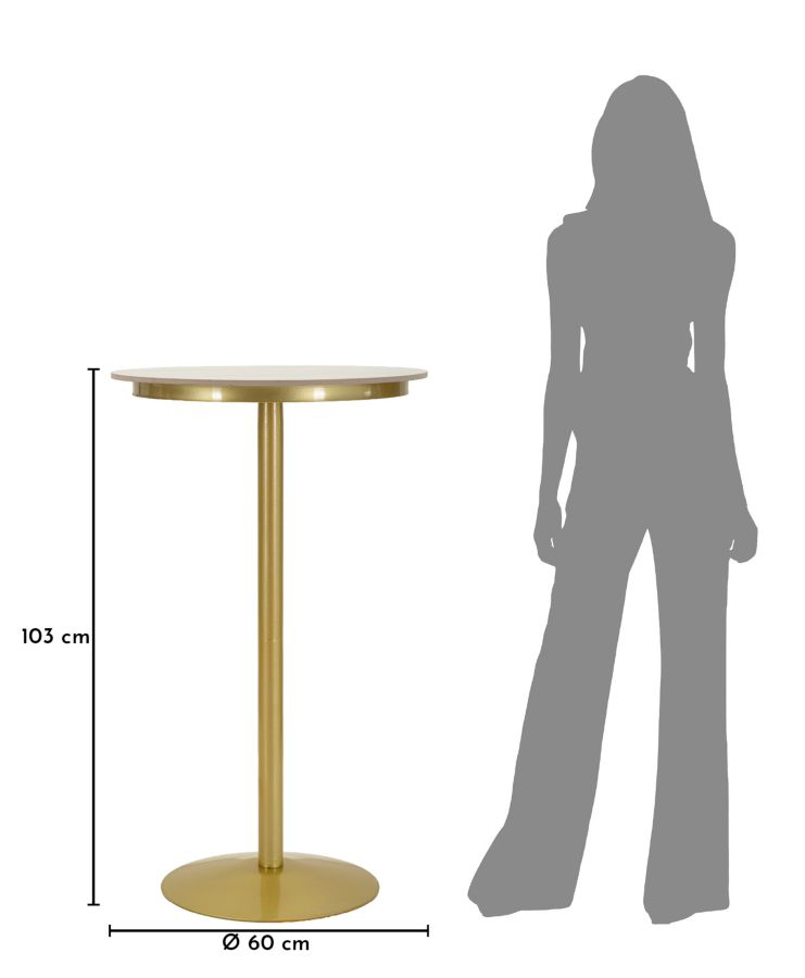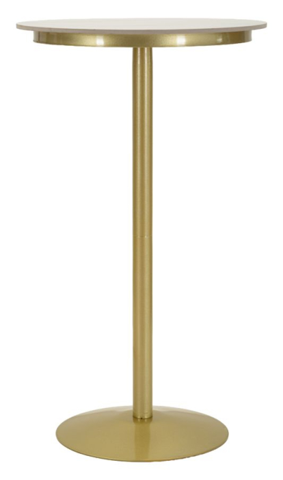 Masa de bar Simply impresionează printr-un design minimalist și rafinat, în care liniile simple se îmbină armonios cu finisajele elegante. Blatul rotund cu aspect de marmură albă creează un contrast sofisticat cu baza metalică aurie, oferind un aer modern și luminos spațiului.