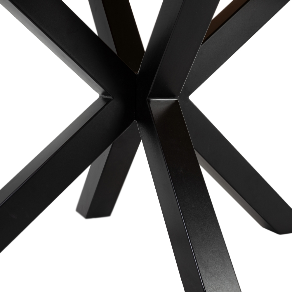 Această masă de dining pentru 6 persoane, se remarcă printr-un design elegant și robust, fiind realizată din lemn de mango, recunoscut pentru durabilitatea și textura sa distinctă. Cu dimensiuni de 160 cm lungime, 90 cm lățime și 76 cm înălțime, masa oferă un spațiu generos pentru întâlniri și cine în familie. Blatul este decorat cu un model geometric sofisticat, adăugând un element vizual deosebit. Picioarele din fier, finisate în negru, oferă stabilitate și un contrast puternic, subliniind caracterul contemporan al piesei. Această masă este ideală pentru cei care caută un echilibru între tradițional și modern în decorul lor. Disponibilă exclusiv la CreativDeco, este o alegere perfectă pentru un spațiu de dining stilat și funcțional.