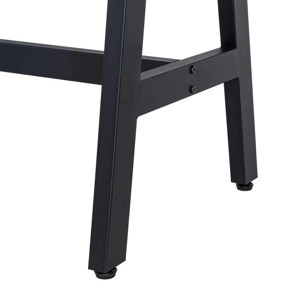 Structura este realizată din picioare metalice negre ușor înclinate, unite printr-o bară de susținere inferioară, oferind stabilitate și rezistență în utilizare.