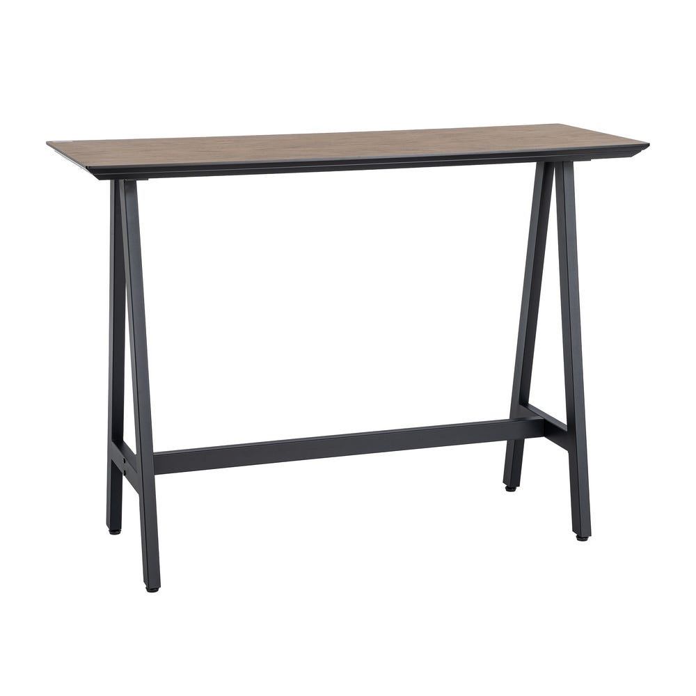 Masă înaltă cu blat maro din mdf și structură metalică neagră pentru dining și bar 138 x 50 x 100 cm