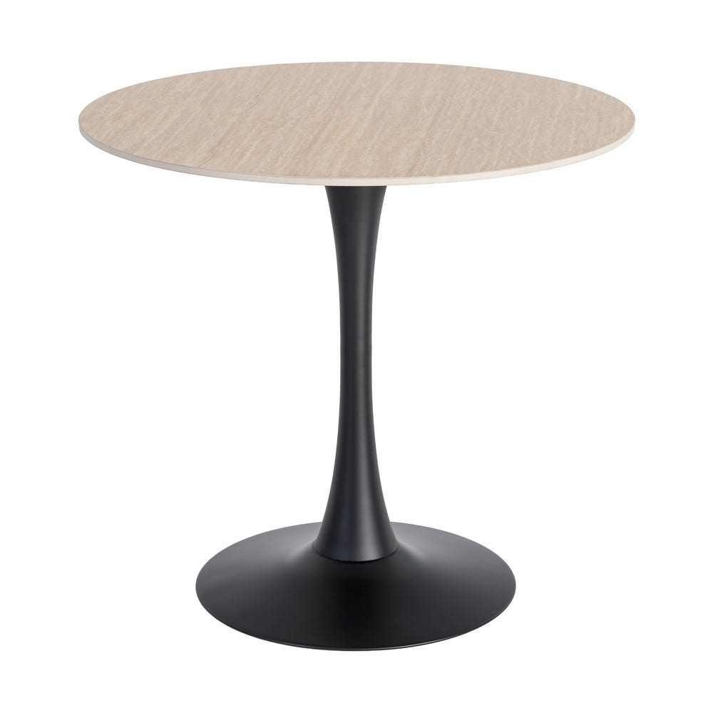 Blatul rotund bej are o grosime de 11 mm și o suprafață netedă cu aspect de marmură travertin, evidențiind textura specifică acestui finisaj. Diametrul de 80 cm oferă proporții echilibrate și utilizare confortabilă atât în spații rezidențiale, cât și în cele comerciale.