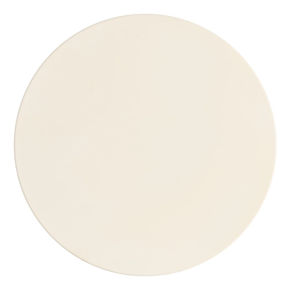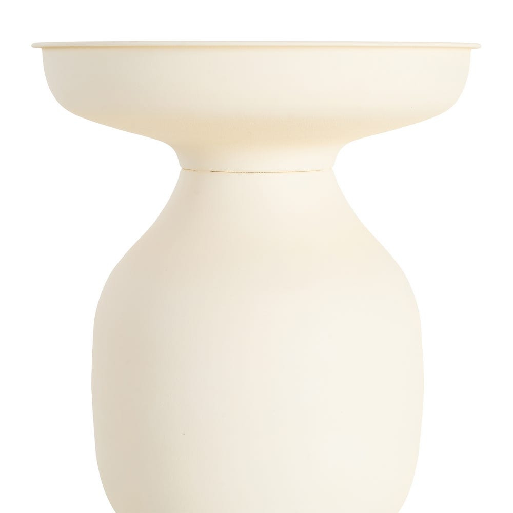 Masă auxiliară sculpturală din oțel cu blat circular plat și bază rotunjită alb crem 46 x 46 x 51 cm