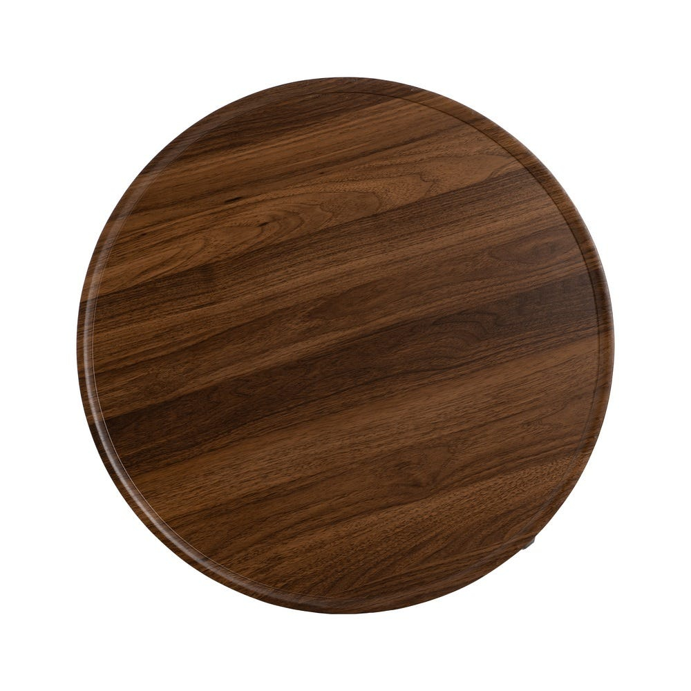 Masă de cafea modernă, compactă și versatilă, ideală pentru livinguri contemporane, apartamente mici sau zone lounge. Designul rotund, cu blat subțire într-o nuanță caldă de maro și structură metalică neagră, aduce un echilibru elegant între funcționalitate și estetică.