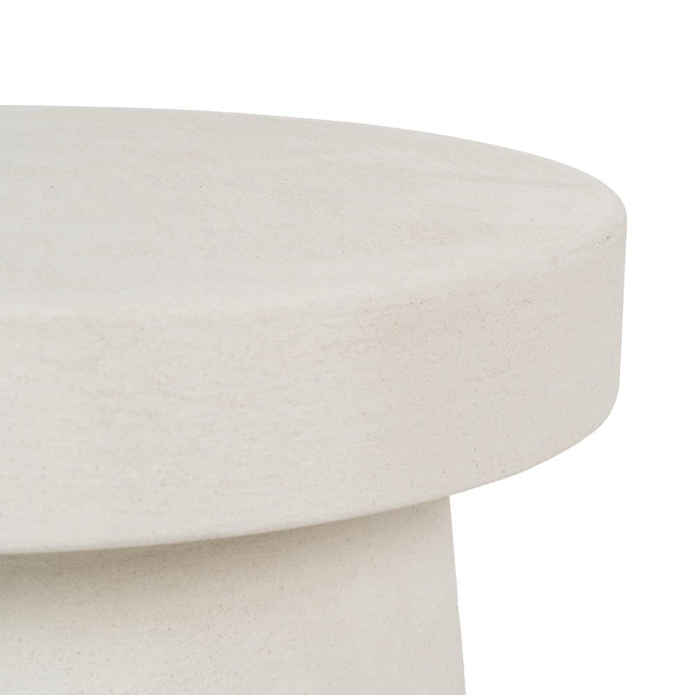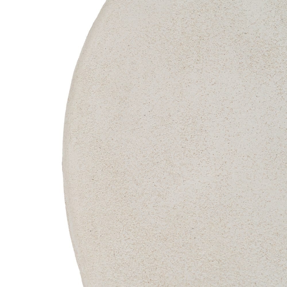Această masă laterală albă Wilma impresionează prin designul său sculptural, cu bază conică și blat rotund gros, oferind un aspect modern și minimalist. Textura fină și forma compactă o fac ideală pentru interioare contemporane, scandinave sau japandi.