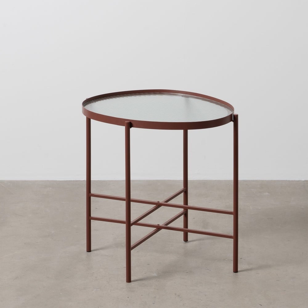 Cauți o masă laterală modernă, cu un design grafic și elegant? Masa laterală Tile este realizată cu un blat rotund din sticlă texturată și o structură metalică subțire, într-o nuanță caldă de maro-roșiatic. Liniile sale fine și geometria bazei adaugă un stil modern și urban oricărui spațiu. Perfectă pentru livinguri contemporane, colțuri de lectură sau ca suport decorativ în spații minimaliste.