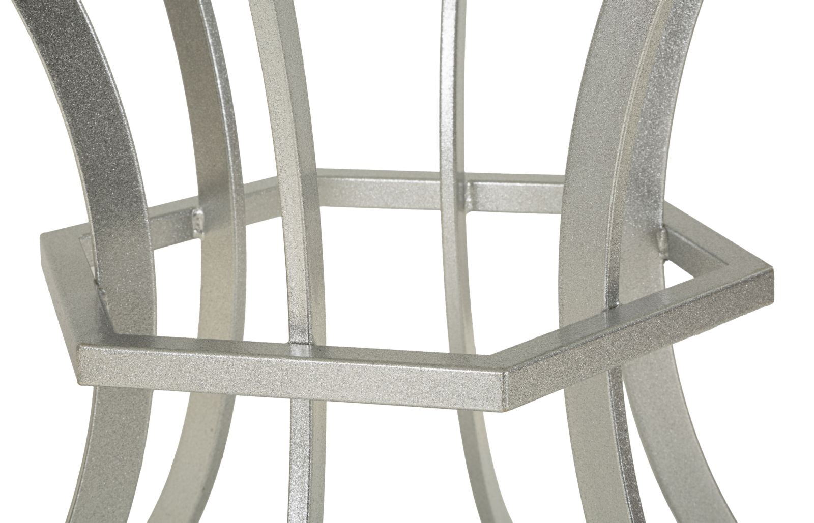 Aceasta masa rotunda de dining este o expresie pura a rafinamentului contemporan cu accente glam, conceputa pentru a aduce eleganta si sofisticare in orice interior. Cu o silueta armonioasa si proportii perfect echilibrate, masa atrage imediat atentia prin baza sa metalica argintie, compusa din linii curbe ce creeaza un joc fluid si sculptural. Finisajul discret lucios al structurii metalice confera un aer nobil si modern, iar elementul central octogonal adauga stabilitate si un detaliu arhitectural subtil.