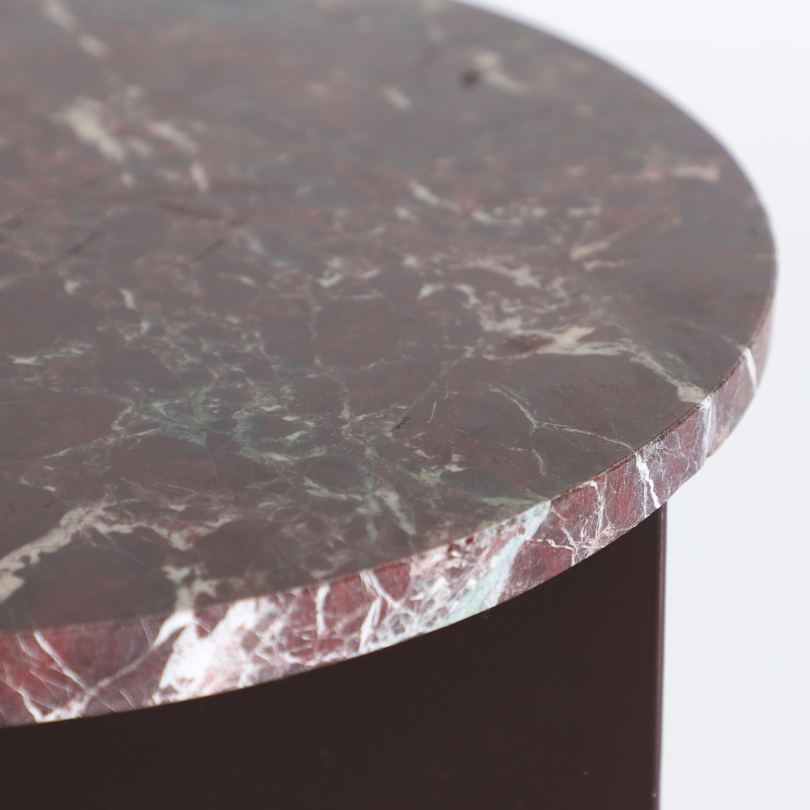 Structura verticală din metal creează un volum bine definit, cu o linie curată și stabilă, în timp ce blatul din marmură sintetică adaugă o notă rafinată, fără a încărca vizual piesa. Jocul dintre suprafața lucioasă și textura venată conferă măsuței un caracter contemporan, cu o eleganță calmă.