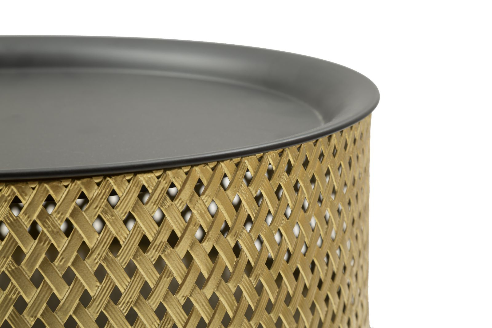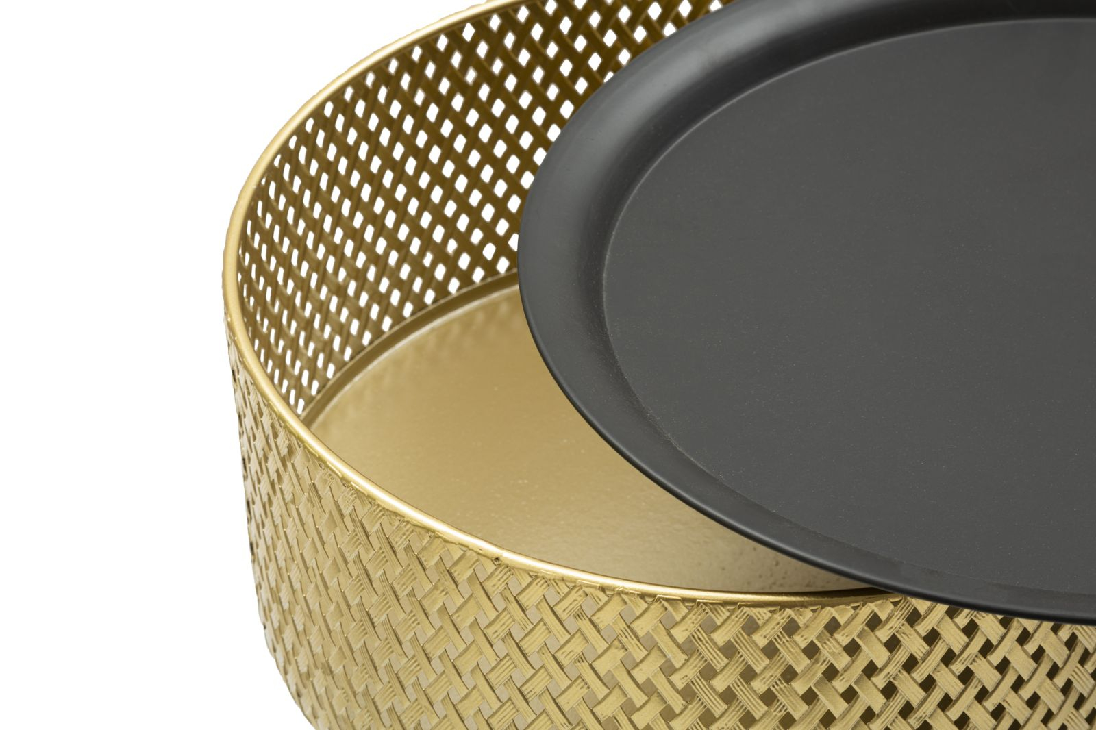 Îți dorești o măsuță laterală rotundă cu depozitare integrată? Masuta laterala multifunctionala cu depozitare este răspunsul perfect. Cu picioare negre, elemente de decor aurii și spațiu de depozitare ascuns sub tablie, această măsuță multifuncțională adaugă stil și practicitate. Ideală pentru livinguri moderne sau birouri elegante, poate fi folosită pentru a ascunde telecomenzi sau accesorii mici. Design italian original Mauro Ferretti. Fabricată din fier, cântărește 3 kg și are dimensiunile de 40x65 cm.