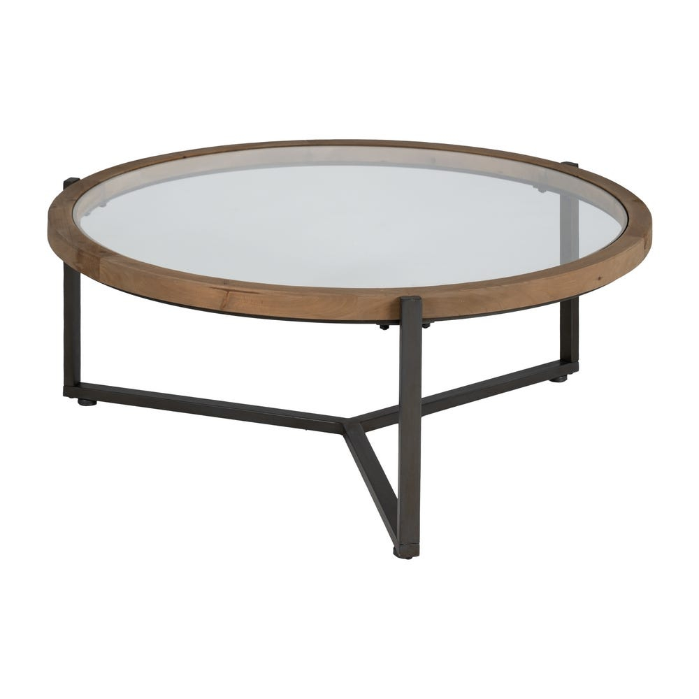 Cu un design echilibrat între estetica industrială și liniile contemporane, această măsuță de cafea rotundă este o alegere practică și elegantă pentru livinguri moderne sau spații de relaxare cu personalitate. Blatul din sticlă temperată, încadrat într-o ramă robustă de lemn de brad cu finisaj natural, creează o combinație de materiale contrastante și totodată armonioase.