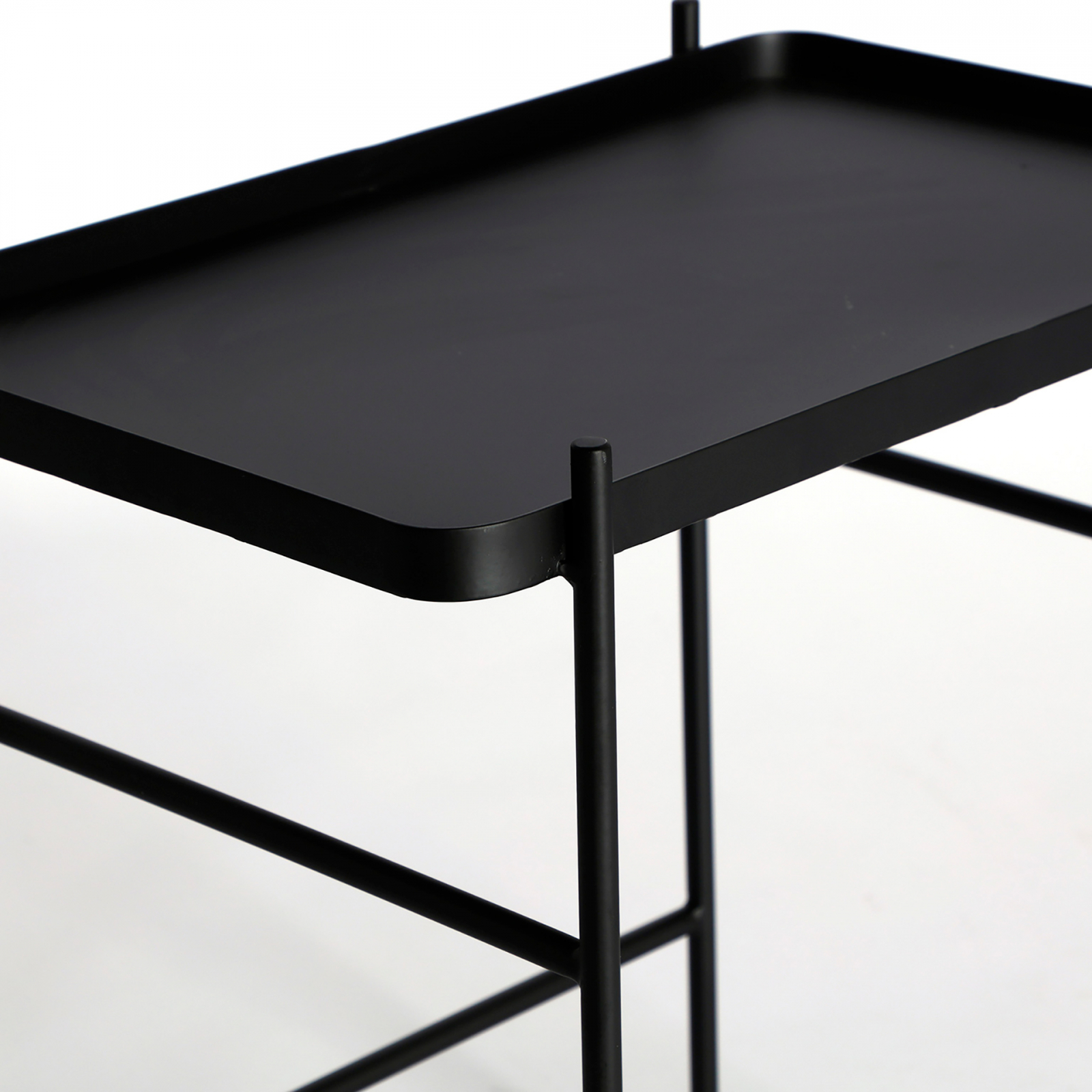 Setul de masute Devich este dezvoltat de designerii spanioli de la KODU Homedesign. FISA TEHNICA: Greutate suportata raft: 15 kg, Dimensiuni picioare: 1x1x56 cm si 1x1x48 cm, Distanta intre picioare: 42x34 cm si 36x29 cm, Distanta de la picior la margine: 5 cm, Grosime blat: 0.2 cm, Greutate suportata: 15 kg, Nu include: picioare reglabile. Greutate: 6.08 kg. Dimensiuni: Mare 55x38x60 cm, Mica 48x33x51 cm. Realizate din fier negru, aceste masute practice prezinta o structura simpla cu tavi pentru expunerea obiectelor decorative. Stilul industrial se evidentiaza prin liniile minimaliste si materialul brut. Perfecte pentru living unde pot crea compozitii decorative versatile. Fierul folosit asigura stabilitate si durabilitate exceptionala.