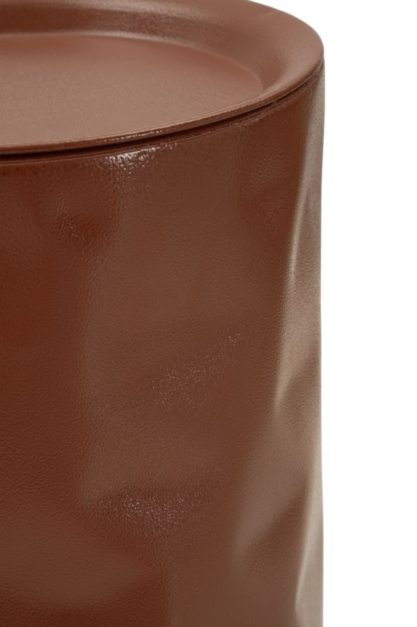 Forma verticală și proporțiile echilibrate pun în valoare textura metalului, modelată într un finisaj cu aspect neregulat ce conferă personalitate fiecărei piese. Contrastul dintre nuanța roșie și cea albă permite integrarea lor atât ca accent decorativ, cât și ca element funcțional într un spațiu contemporan.