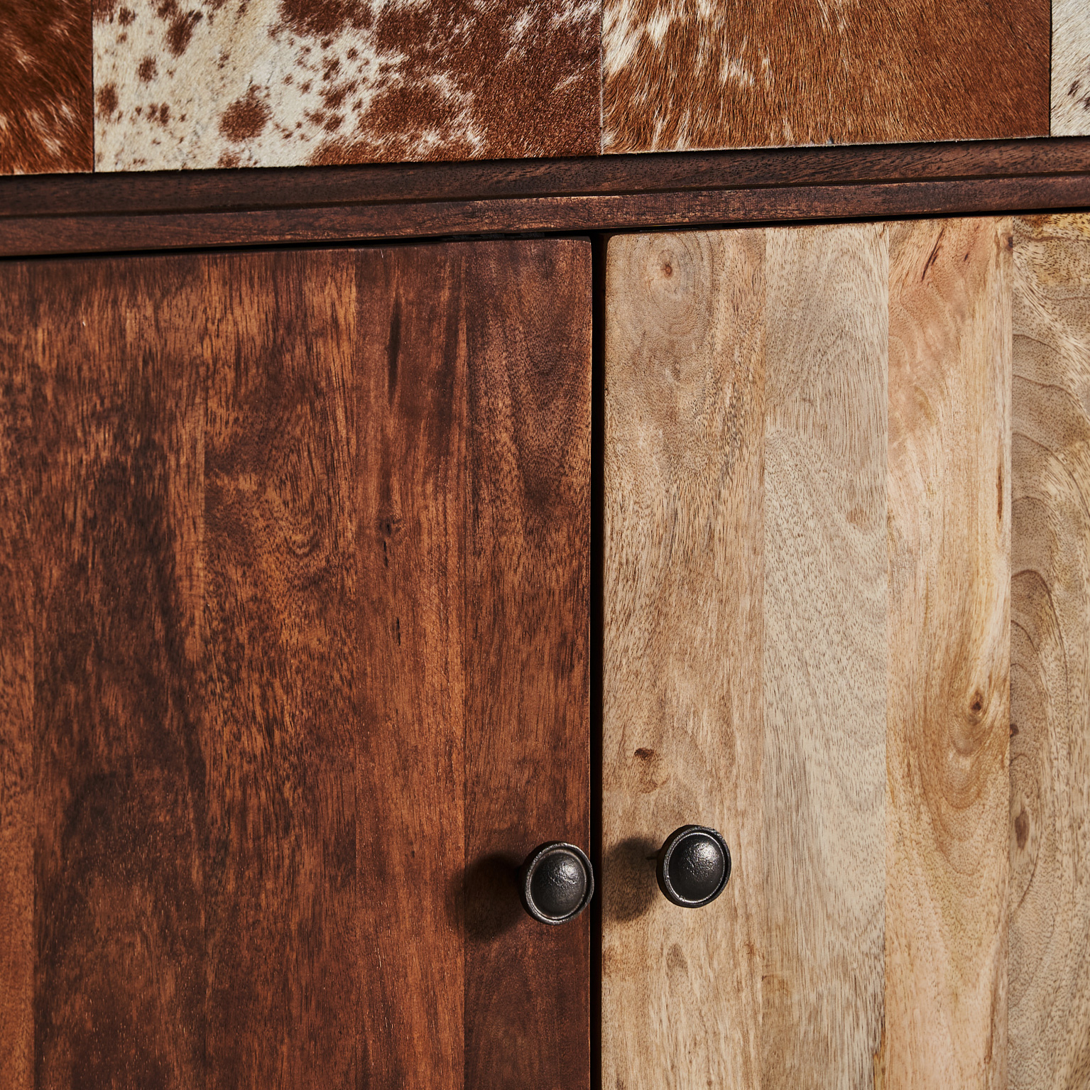 Mobilier bar din lemn de mango reciclat maro și bej în stil scandinav, fabricat artizanal din lemn de mango reciclat, forjă și piele de vacă. Cu dimensiuni de 90 cm lungime, 45 cm lățime și 152 cm înălțime, această piesă aduce o notă de căldură naturală și funcționalitate în orice interior. Mobilierul bar scandinav este apreciat pentru designul său curat și aspectul organic. Combinația de maro și bej oferă un contrast subtil și elegant. Importat de CreativDeco, acest mobilier bar de calitate spaniolă cântărește 55,6 kg și este ideal pentru a crea un colț de bar cu caracter în living sau zona de dining, aducând un touch de design scandinav și sustenabilitate în casa dumneavoastră.