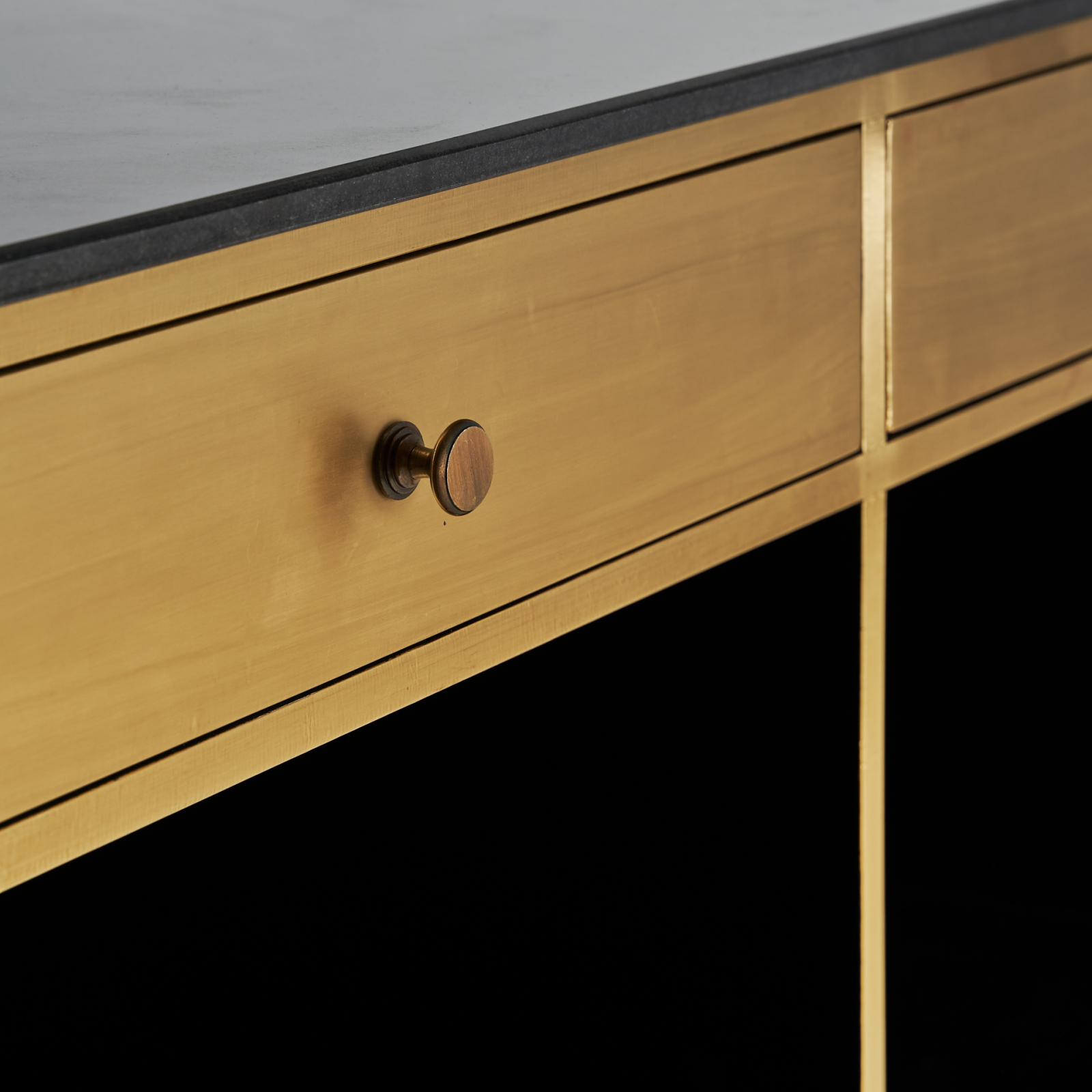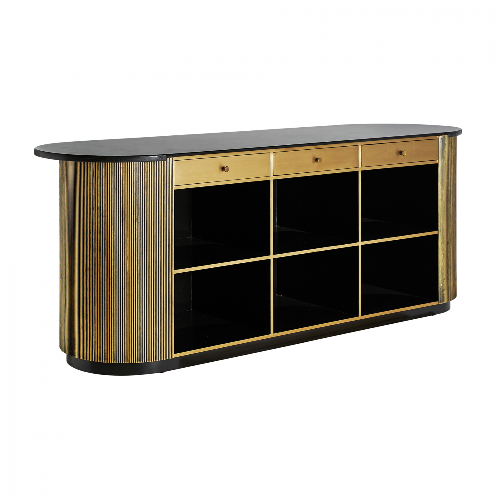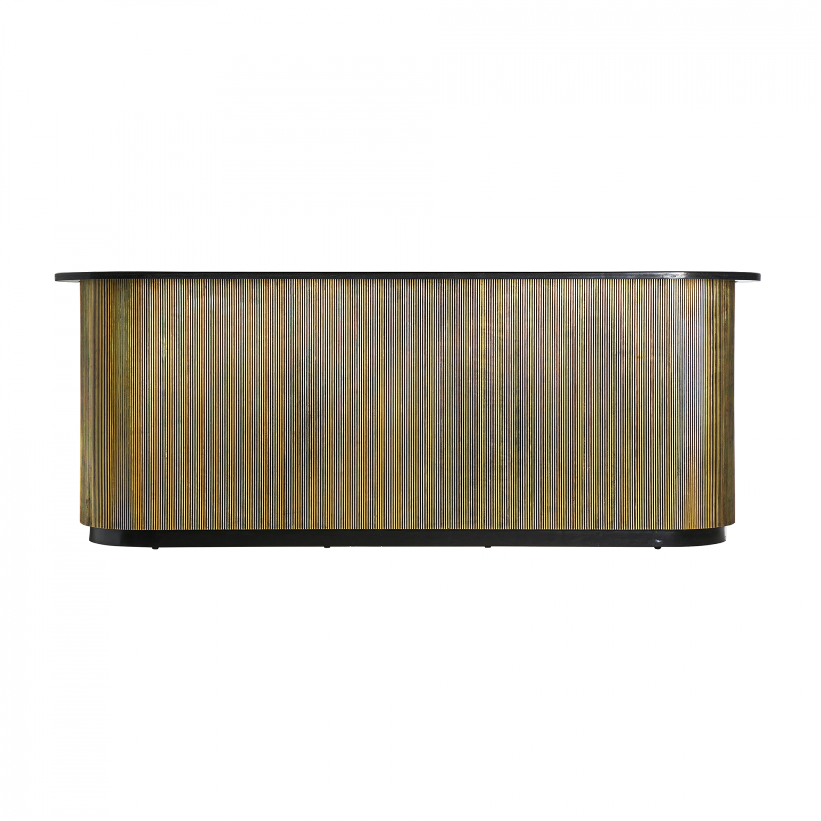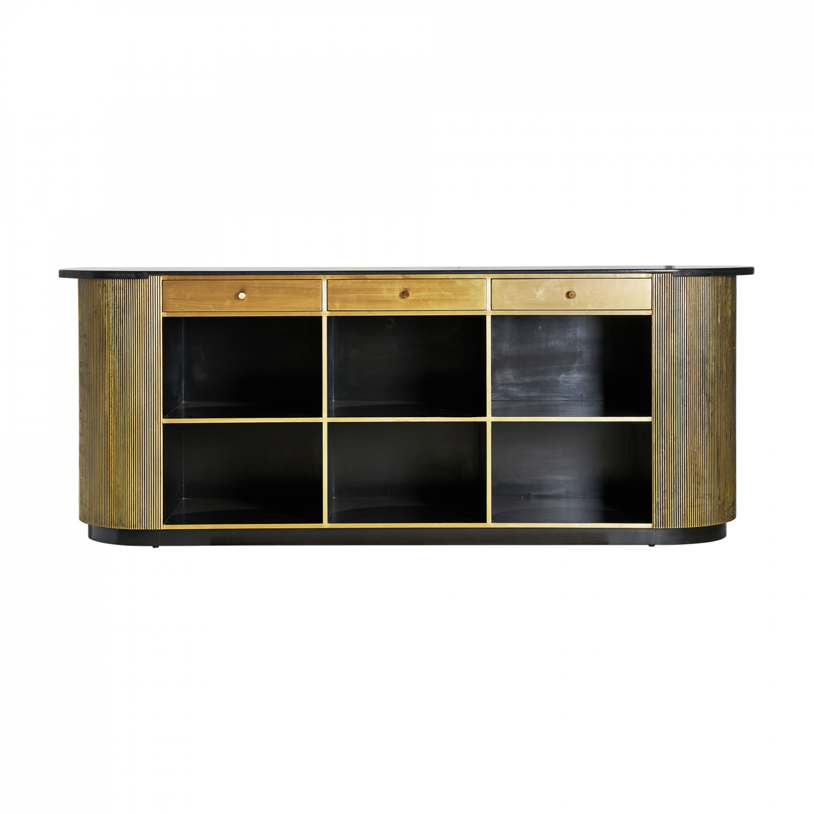 Tejghea bar din metal auriu în stil Art Deco, creată manual din fier și marmură. Cu dimensiuni impresionante de 278 cm lungime, 86 cm lățime și 107 cm înălțime, această piesă aduce o notă de lux și grandoare în orice spațiu. Tejghelele bar Art Deco sunt renumite pentru designul lor sofisticat și aspectul luxos. Finisajul auriu oferă un aspect strălucitor și rafinat, în timp ce marmura adaugă un element de lux natural. Importată de CreativDeco, această tejghea bar de calitate spaniolă cântărește 405,6 kg și este ideală pentru a crea un punct focal impresionant în bucătărie, living sau zone de dining, aducând un touch de opulență controlată și glamour interbelic în casa dumneavoastră.