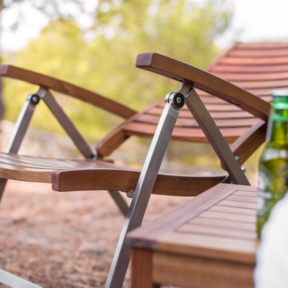 Materiale: Structură din oțel inoxidabil 18/10 + lamele de lemn masiv de acacia