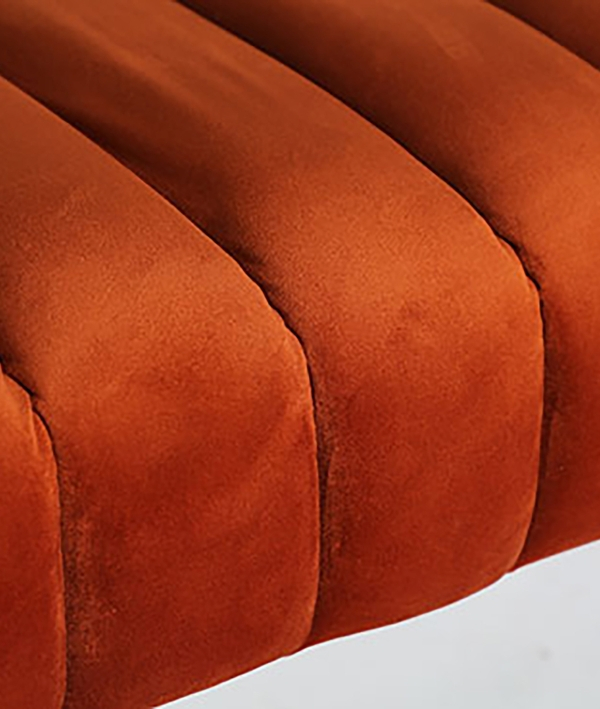 Textura catifelei adaugă un aspect luxuriant și o senzație plăcută la atingere, transformând banca într-o piesă centrală atunci când este amplasată la capătul patului sau într-un hol spațios. Forma sa echilibrată și proporțiile compacte o fac ușor de integrat în multiple tipuri de decor.