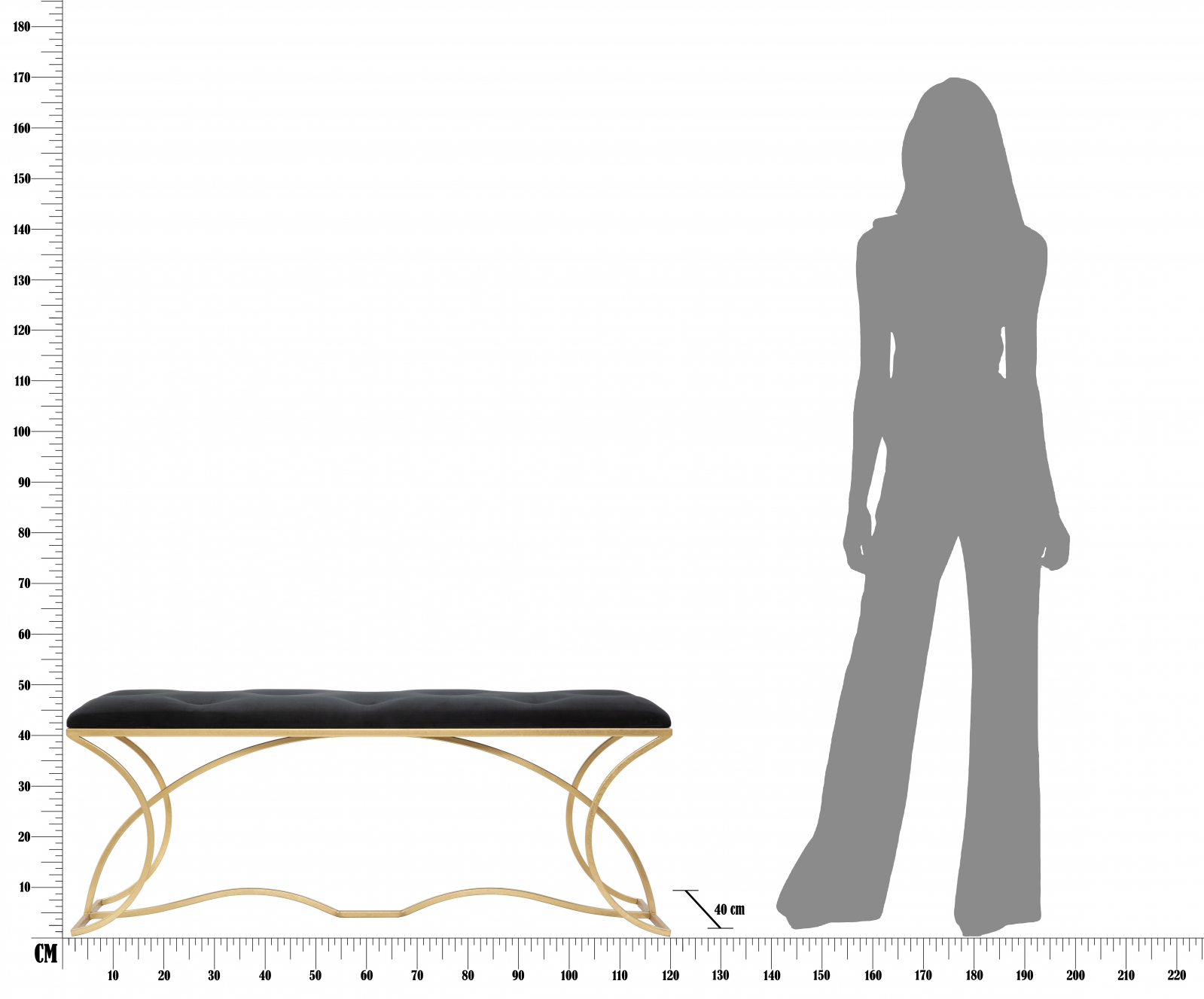 Mauro Ferretti Bancheta Sunshine, catifea, auriu/negru, 120x40x45cm
