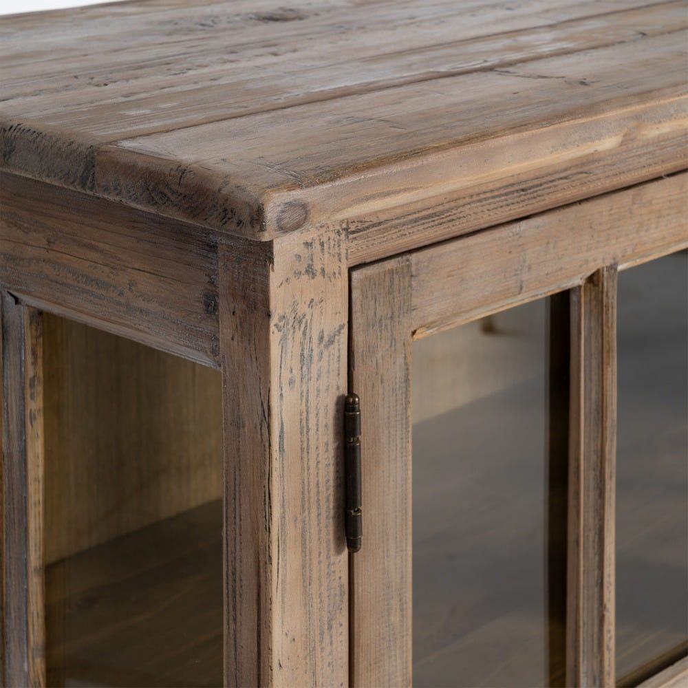 Acest bufet lung și bine proporționat aduce o senzație de ordine calmă și lumină într-un interior aerisit. Lemnul de pin reciclat, cu finisaj natural și patină subtilă, creează un fundal cald care pune în valoare obiectele expuse, fără a le eclipsa. Este o piesă care sugerează stabilitate și echilibru, potrivită pentru spații în care mobilierul este ales cu grijă, nu în grabă.