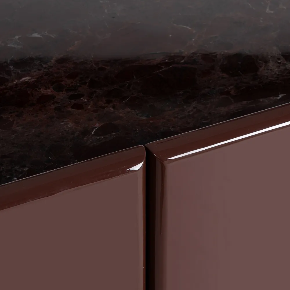 IXIA Bufet modern lacuit grena cu blat din marmură pentru interioare contemporane Garnet 163 x 45 x 75 cm