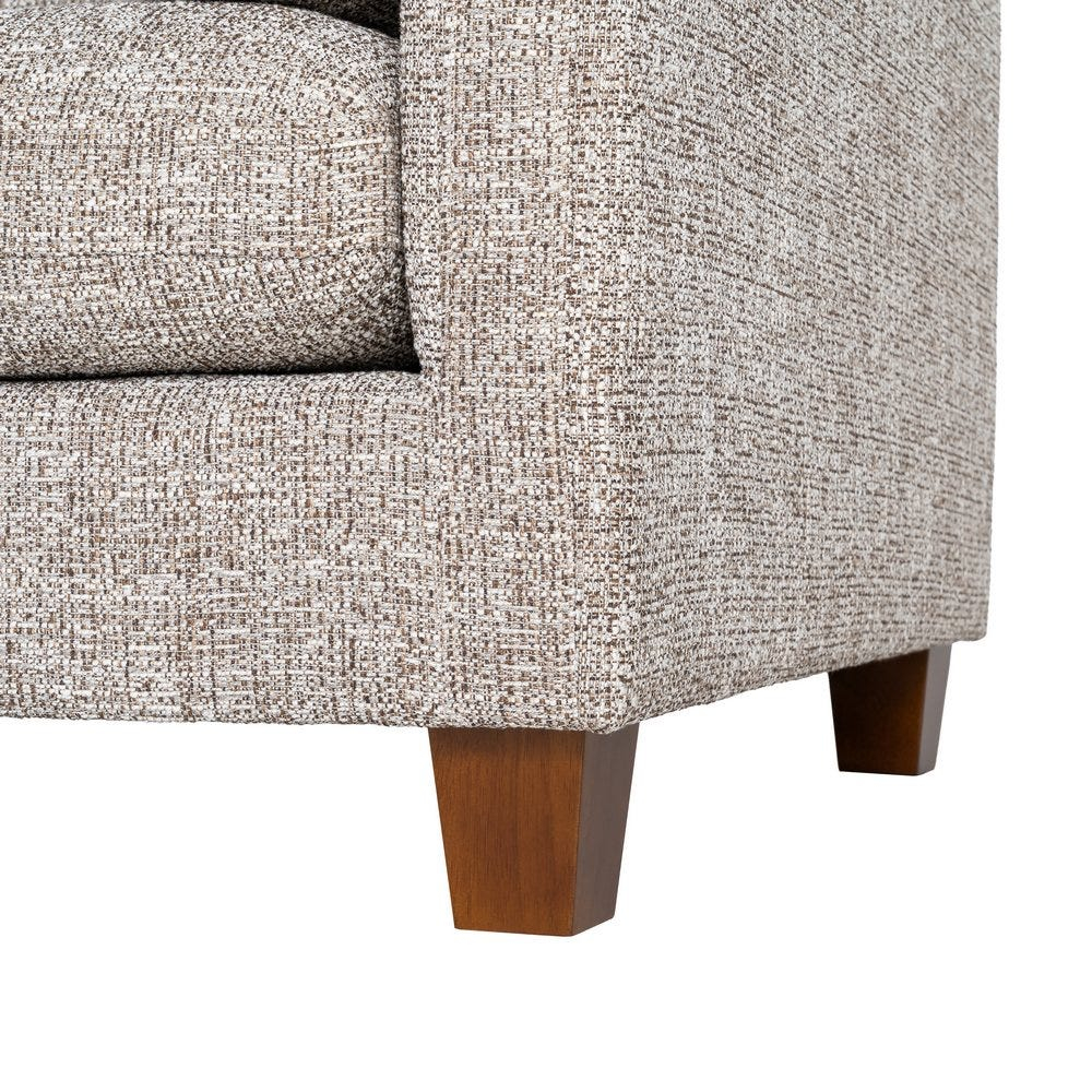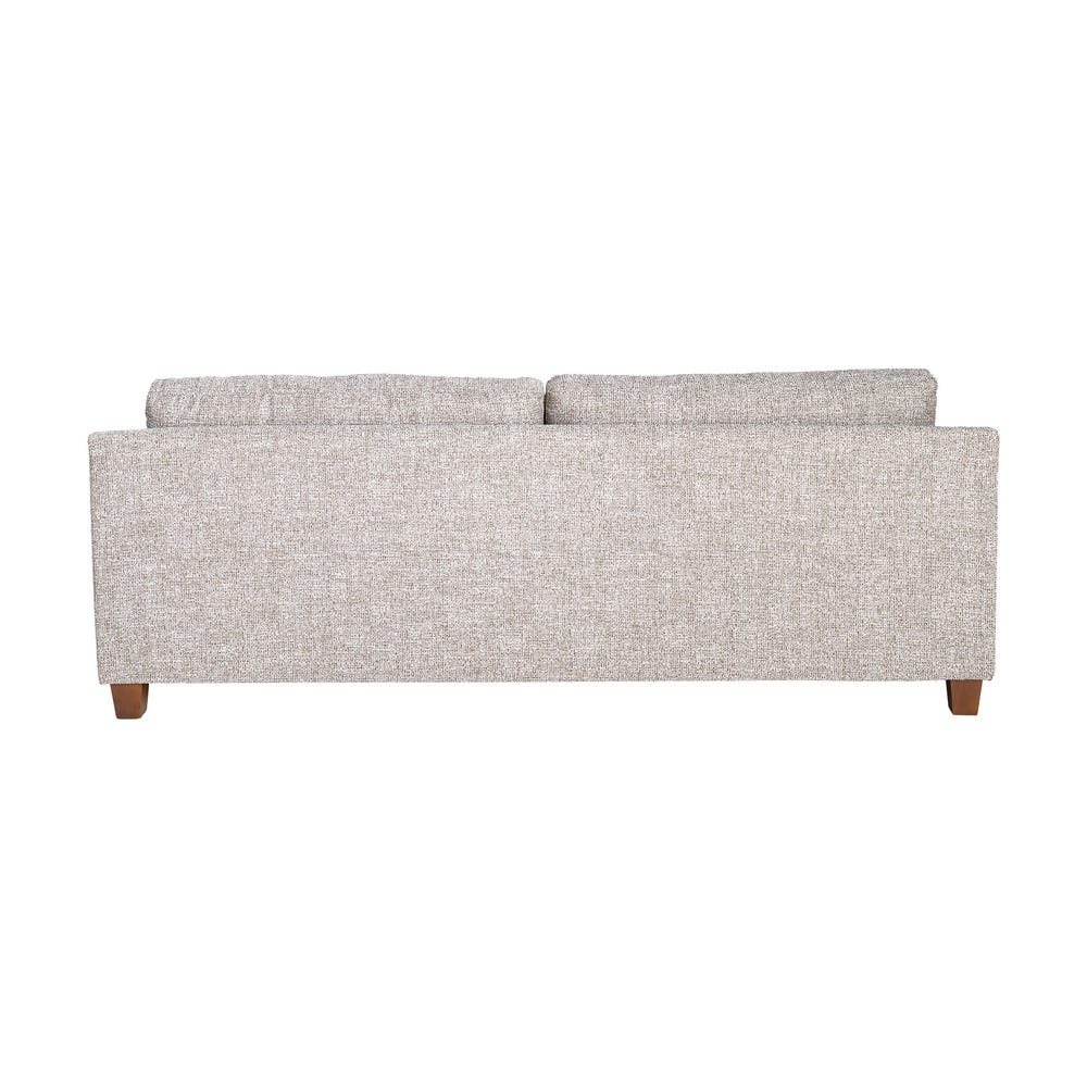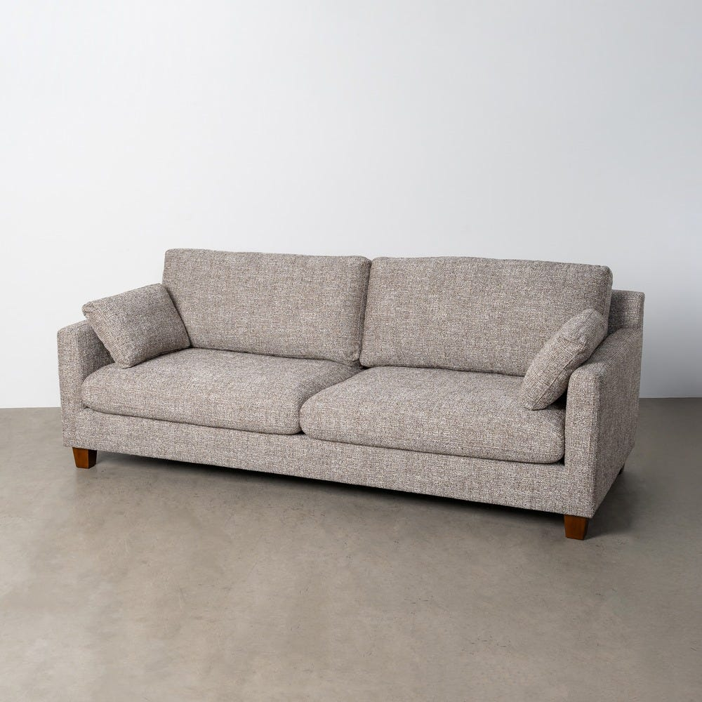 Picioarele din lemn de cauciuc susțin structura și adaugă un accent natural discret, ridicând canapeaua de la sol pentru un profil echilibrat. Proporțiile bine definite permit utilizarea acestei canapele ca piesă principală într-un living, fără a încărca vizual spațiul.