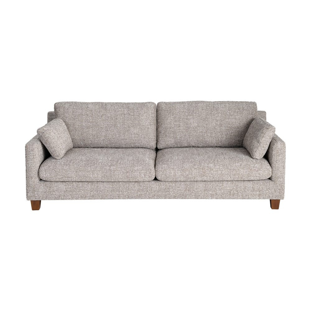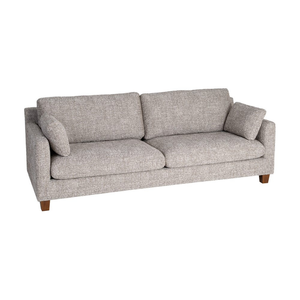 Această canapea cu 3 locuri în nuanță grej este concepută pentru amenajări de living care pun accent pe echilibru vizual, confort și texturi discrete. Liniile drepte, șezutul generos și pernele bine proporționate conturează o piesă stabilă, cu prezență clară, potrivită pentru spații contemporane sau amenajări neutre.