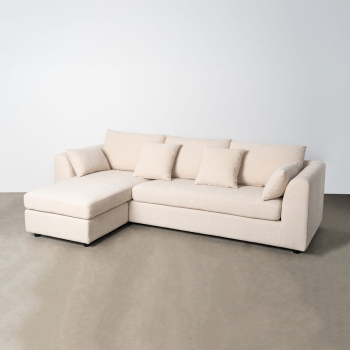 Această canapea colțar cu șezlong stânga dreapta este concepută pentru amenajări de living care necesită flexibilitate și proporții bine echilibrate. Dimensiunile compacte, liniile clare și pernele multiple definesc o piesă versatilă, potrivită pentru spații de relaxare contemporane, cu accent pe confort și funcționalitate.