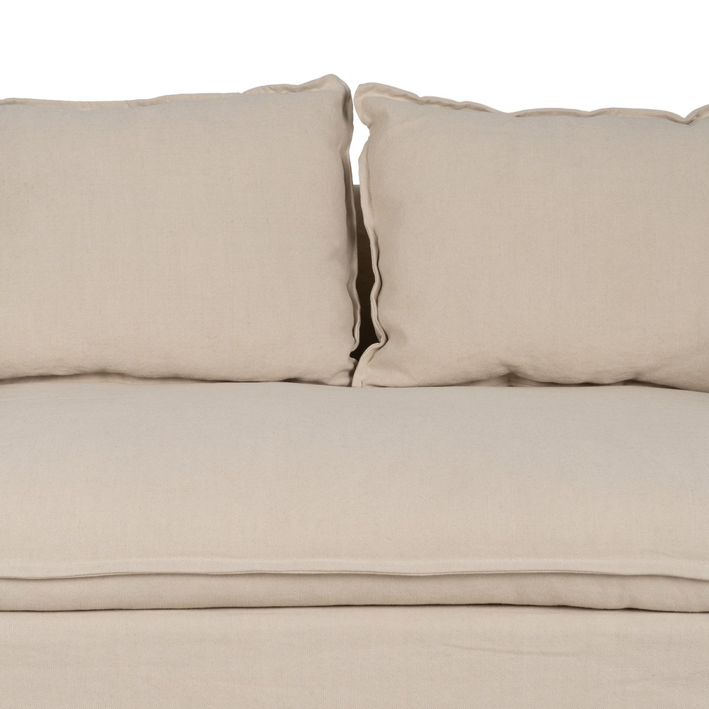 Canapeaua crem cu 2 locuri este o piesă de mobilier confortabilă și elegantă, potrivită pentru interioare sofisticate. Cu dimensiunile de 160 cm lățime, 95 cm adâncime și 85 cm înălțime, oferă un spațiu generos pentru relaxare. Tapițeria dintr-un amestec de 40% in și 60% bumbac este plăcută la atingere, iar structura din lemn de pin asigură rezistență. Șezutul și spătarul sunt umplute cu spumă și pene pentru un confort superior. Înălțimea șezutului este de 47 cm, iar brațele de 65 cm adaugă suport suplimentar. Husele sunt detașabile, facilitând întreținerea. Suportă până la 300 kg. Conform normelor UNE-EN 12520-2016. O alegere perfectă pentru un design elegant și funcțional.