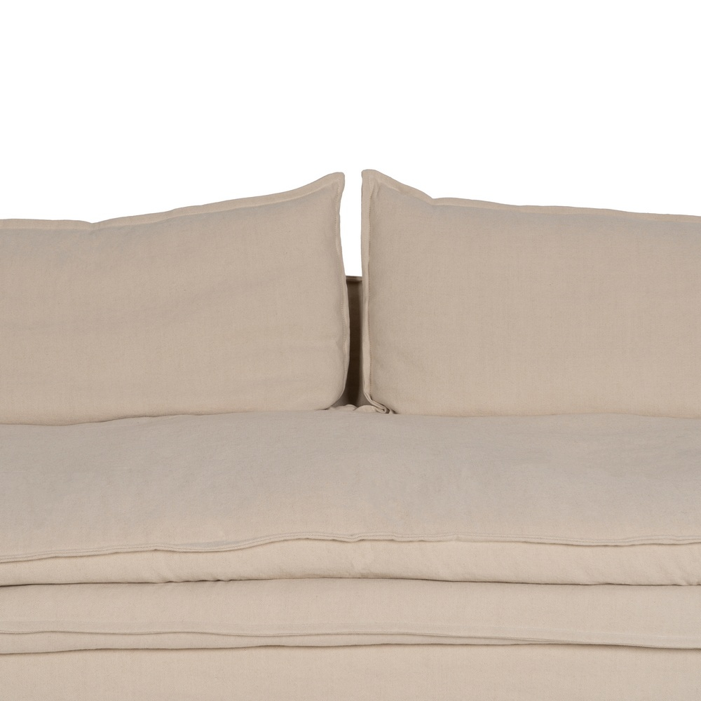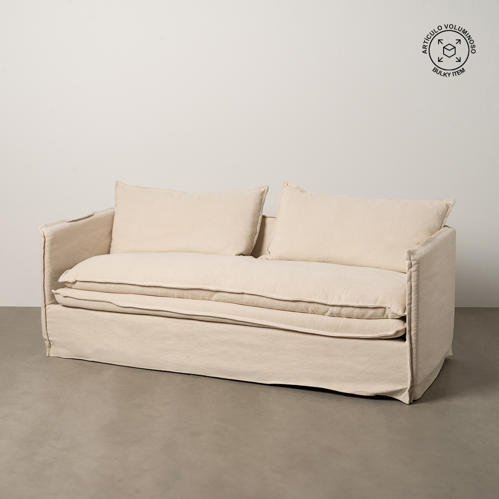 Canapeaua crem cu 3 locuri este o piesă elegantă și confortabilă, ideală pentru interioare moderne sau clasice. Cu dimensiunile de 210 cm lățime, 97 cm adâncime și 89 cm înălțime, această canapea oferă un spațiu generos pentru relaxare. Tapițeria confecționată dintr-un amestec de 40% in și 60% bumbac este moale și durabilă, iar structura solidă din lemn de pin asigură rezistență. Umplutura din spumă și pene oferă un confort optim, iar pernele detașabile cu fermoar facilitează întreținerea. Șezutul se află la 53 cm înălțime, iar spătarul de 43 cm și brațele de 75 cm oferă suport optim. Suportă până la 330 kg. Conform normelor UNE-EN 12520-2016. O canapea sofisticată, perfectă pentru un decor elegant.