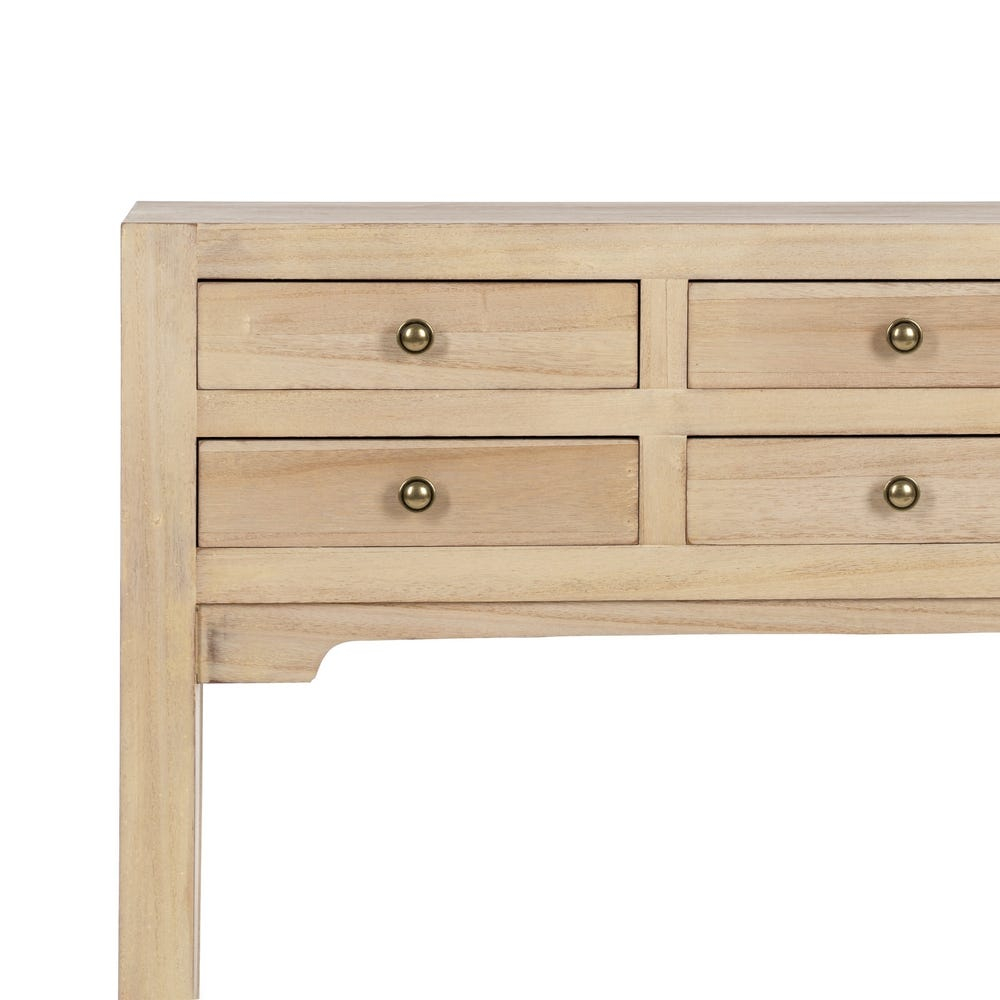 Fabricată din MDF și placată cu lemn de paulownia – un material ușor, dar durabil – consola este versatilă, estetică și ușor de integrat în decoruri naturale, moderne sau chiar scandi elegante.