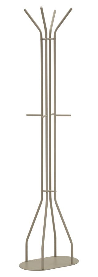 Cuier de podea pentru haine din metal gri taupe cu cârlige multiple design modern minimalist pentru hol și horeca 45 x 28 x 178 cm