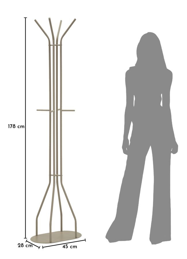 Structura verticală cu mai multe brațe permite organizarea eficientă a hainelor, paltoanelor sau genților, fără a ocupa mult spațiu. Forma sa aerisită îl face ideal atât pentru locuințe moderne, cât și pentru spații profesionale din domeniul horeca, precum restaurante, hoteluri sau lounge-uri.