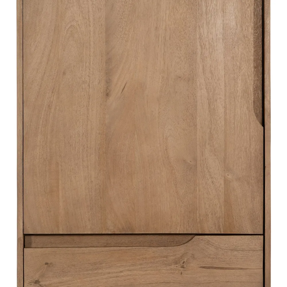 Acest dulap înalt din lemn masiv de mango este o piesă de mobilier versatilă și elegantă, perfectă pentru living, dressing sau birou. Cu trei sertare spațioase și un compartiment de depozitare cu uși, oferă o capacitate generoasă de stocare. Designul minimalist cu linii drepte și adâncituri practice pentru deschiderea ușoară a ușilor și sertarelor îi conferă un aspect modern și funcțional. Picioarele înalte facilitează curățenia și adaugă un aspect aerisit. Fabricat din lemn masiv de mango de înaltă calitate, acest dulap este durabil și rezistent, ideal pentru cei care apreciază mobilierul de calitate din lemn natural. Dimensiunile sale de 40x44x180 cm îl fac potrivit pentru optimizarea spațiului vertical, oferind o soluție de depozitare elegantă și practică în diverse încăperi.