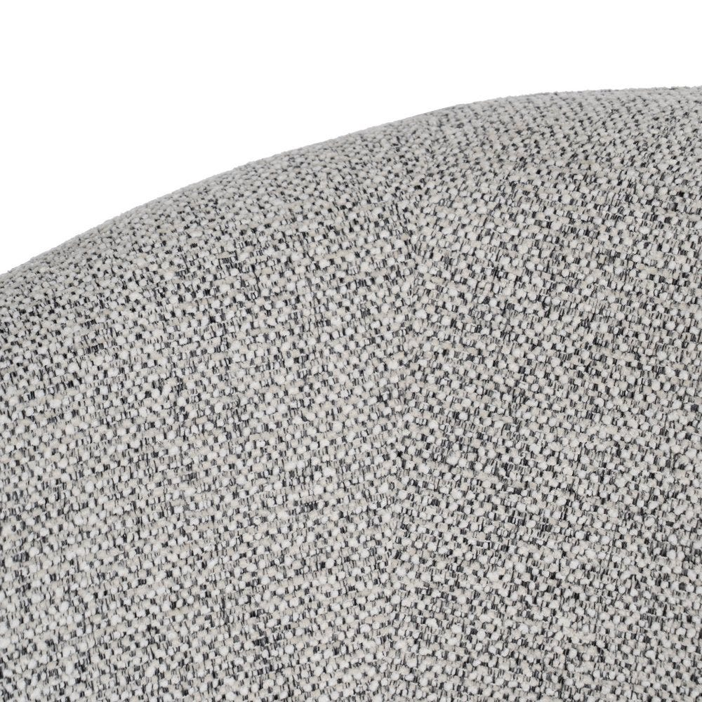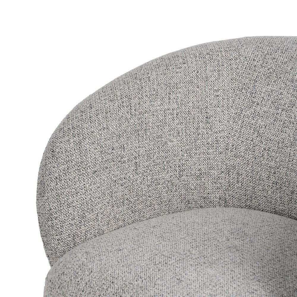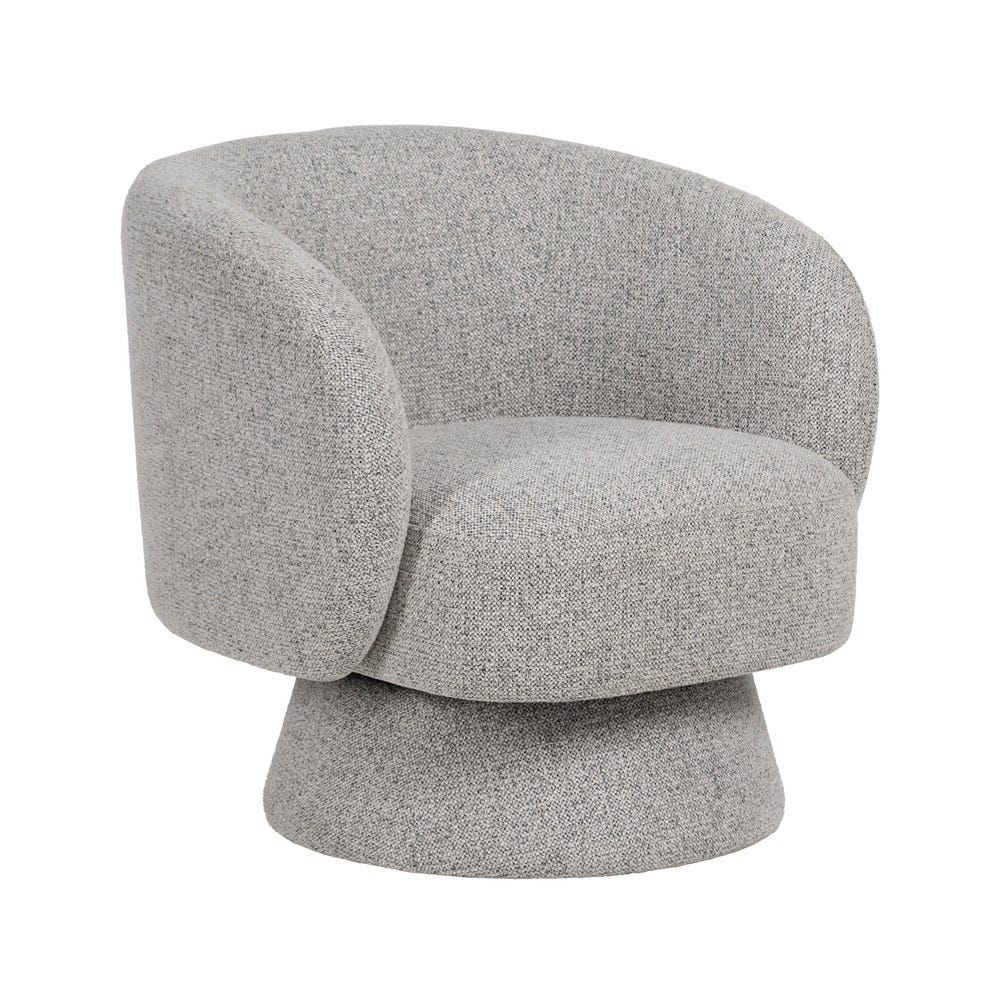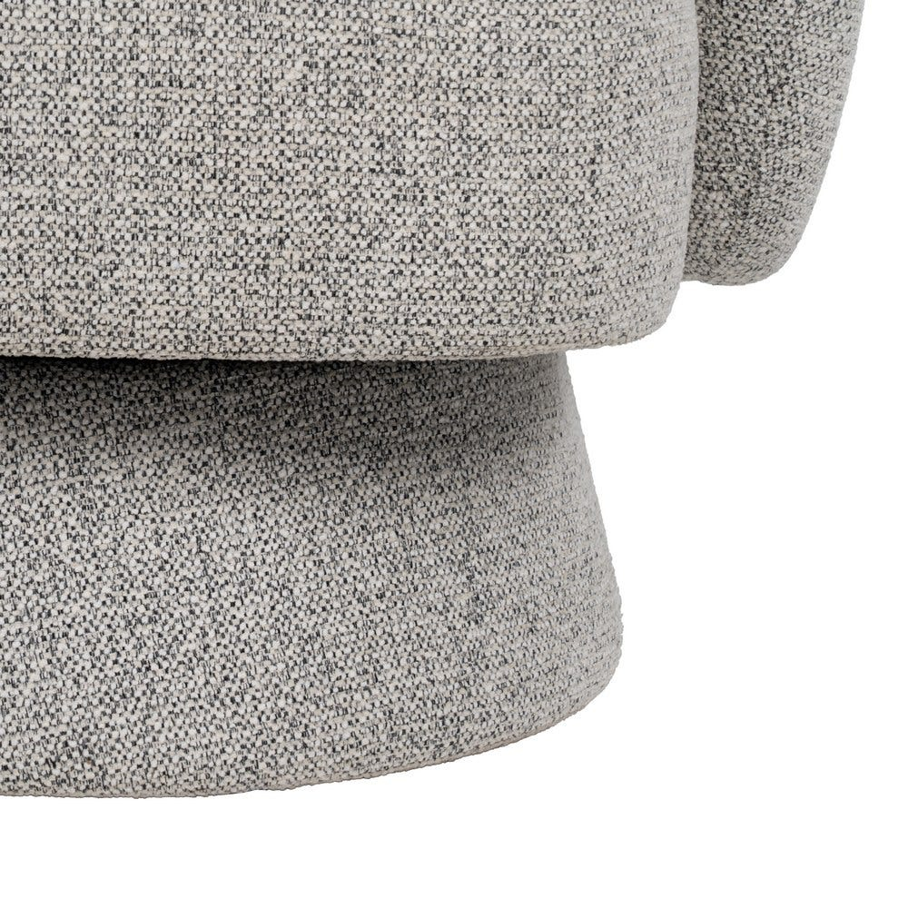 Un fotoliu cu design contemporan și formă organică, ideal pentru interioare moderne și confortabile. Tapițeria din stofă texturată gri-marmorat conferă un aer sofisticat, iar baza rotunjită adaugă o notă sculpturală, perfectă pentru un colț de relaxare sau un living elegant.