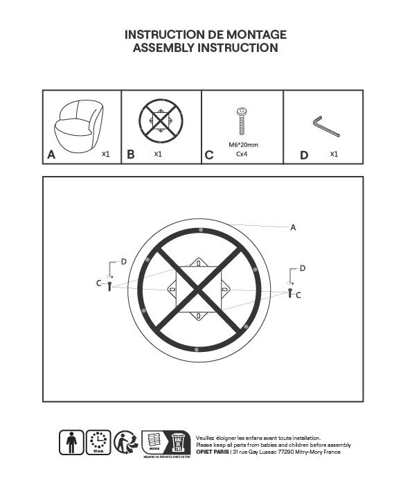 Produsul este o creatie originala franceza de la Opjet Paris pentru living modern. Fotoliu pivotant cu design rafinat realizat cu structura din lemn de pin si placaj. Tapiterie 100% poliester in nuanta nisipiu. Sezut si spatar ergonomic cu spuma poliuretanica densitate 25 kg/m³. Baza metalica pivotanta pentru confort sporit. Dimensiuni: latime 65 cm adancime 77 cm inaltime 69 cm inaltime sezut 43 cm. Greutate: 16.5 kg. Necesita montaj.